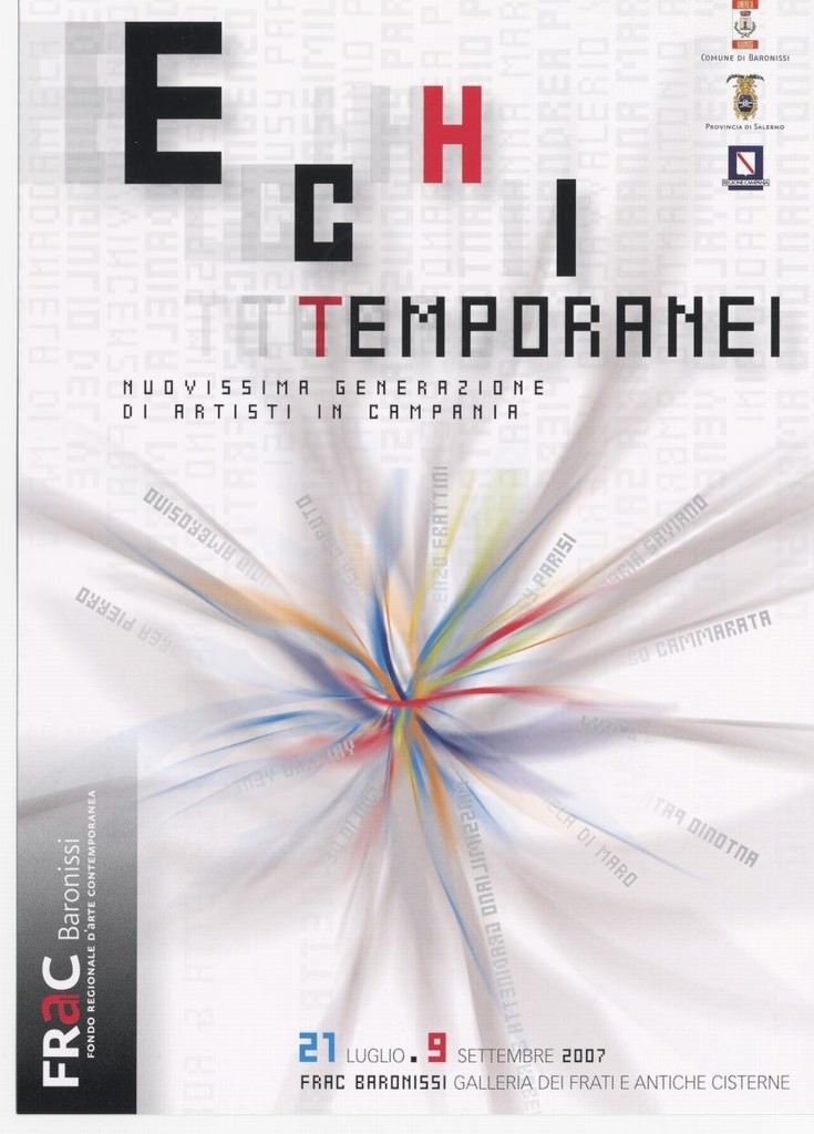 Sabato 21 luglio, alle ore 19,00, nel Salone delle Conferenze del Fondo Regionale d'Arte Contemporanea di Baronissi, sarà inaugurata la mostra Echi Temporanei, uno spaccato su una nuovissima generazione di artisti in Campania, curata da Marcella Ferro con opere di Antonio Ambrosino, Paolo Bini, Marco Cammarata, Andrea Caputo, Giulio Del Vè, Daniela Di Maro, Vincenzo Frattini, Massimiliano Gradinetta & Roberto Marchese, Giusy Parisi, Antonio Patrizio, Andrea Pierro, Anna Maria Saviano, Valerio Veneruso. Una mostra che apre i confini, nello stile del Frac, ad altre esperienze, attivando un rapporto diretto sui linguaggi: alle ore 21,00 si terrà il concerto di una nuovissima band campana i The Mantra Above The Spotless Melt Moon.