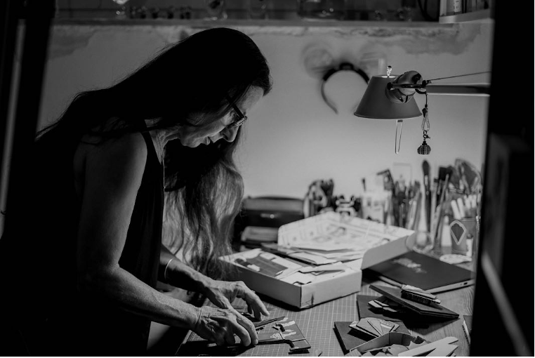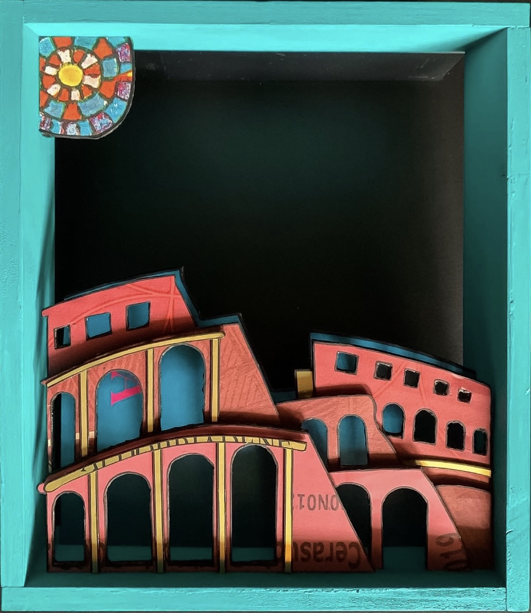 Carla si esprime con un mezzo insolito per l’arte, l’upcycling di cartoni da imballaggio.
