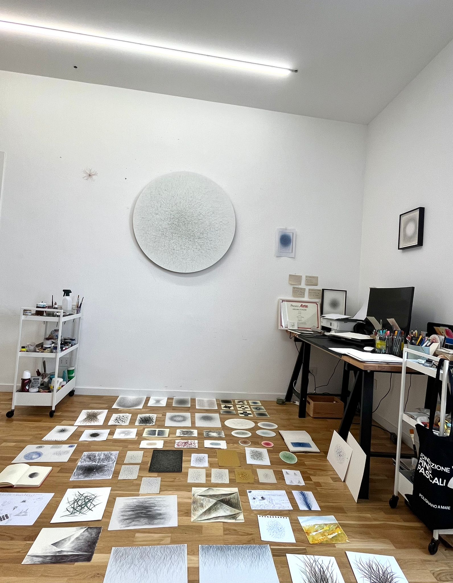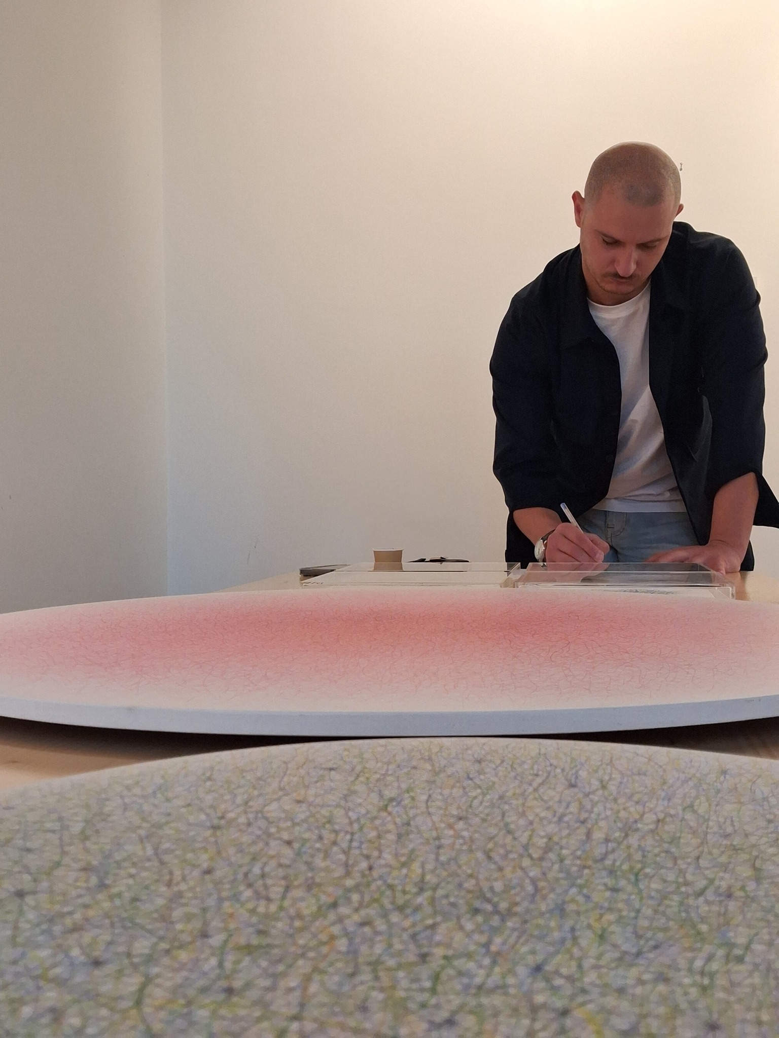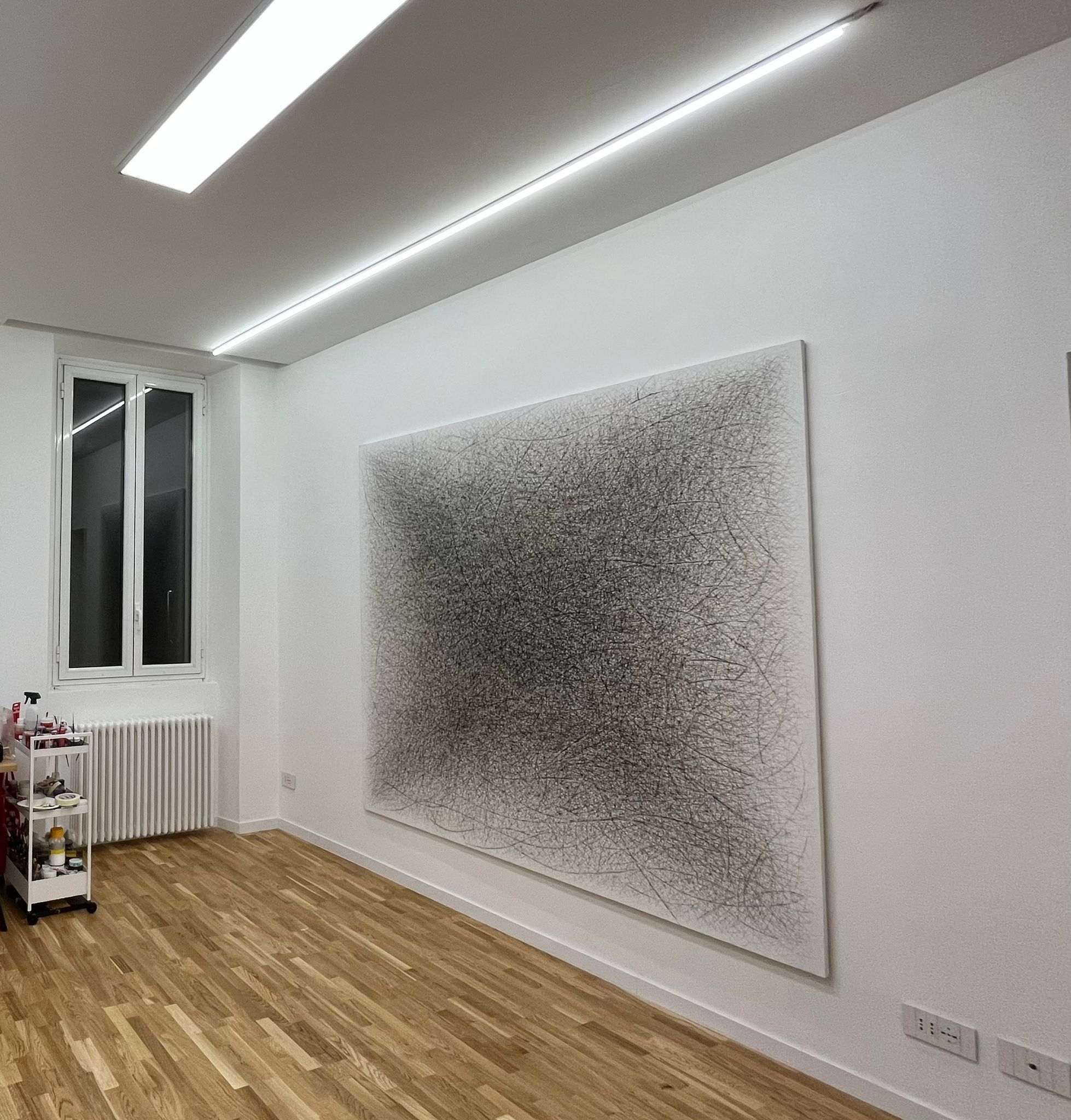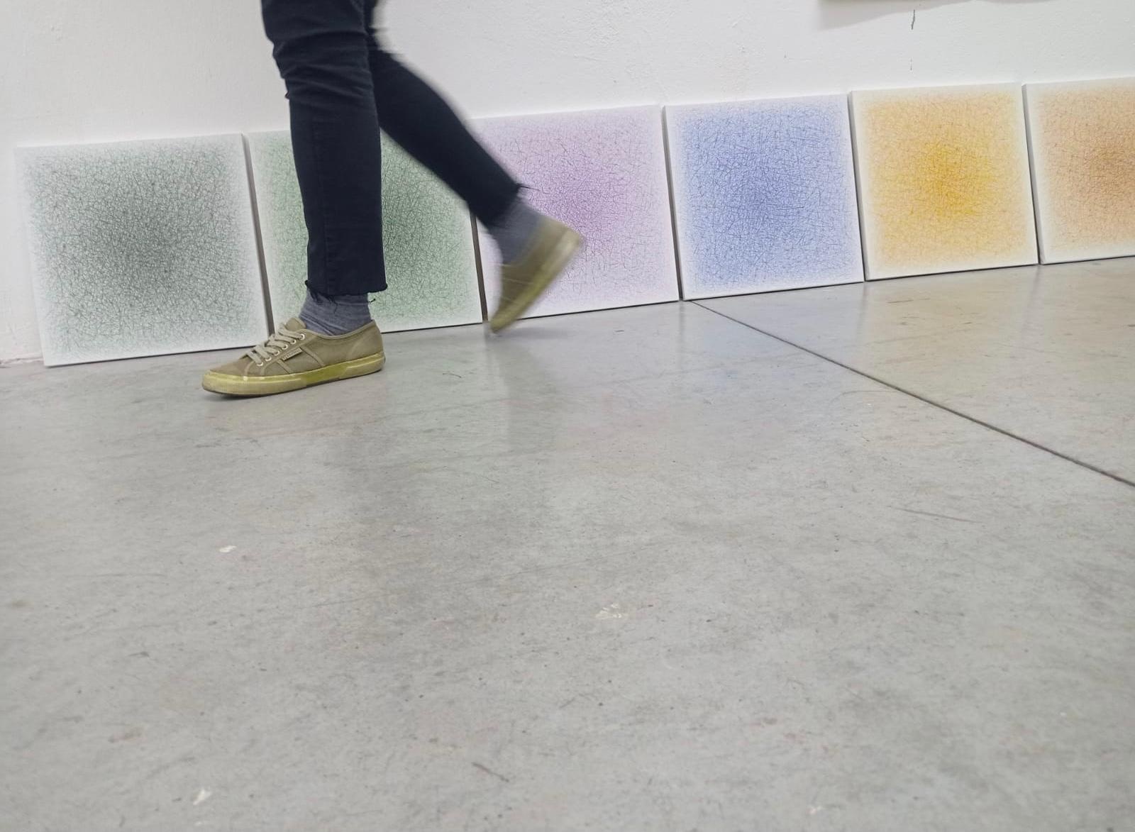 Come spiega l’artista, il vuoto rappresenta uno spazio aperto, che può essere riempito dalle idee e dall’immaginazione di chi osserva l’opera, mentre il pieno diventa luogo di concentrazione e accumulo di energia, una trama di linee e tensioni che suggeriscono forza e dinamismo. In questo dialogo tra presenza e assenza, ogni dipinto si configura come una soglia, un punto di partenza verso un’immagine che prende forma nell’incontro tra opera e sguardo.