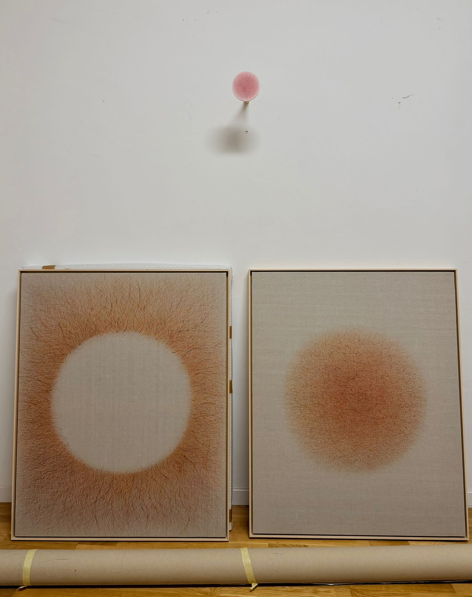 Nella mostra cosentina l’artista presenta un nuovo ciclo di opere in cui emergono forme sospese, attraversate da vuoti e silenzi, superfici che suggeriscono una dimensione contemplativa e introspettiva. Tra i lavori esposti spicca un dittico inedito che raffigura due forme circolari – o, per meglio dire, due campi energetici – che evocano il rapporto tra pieno e vuoto.