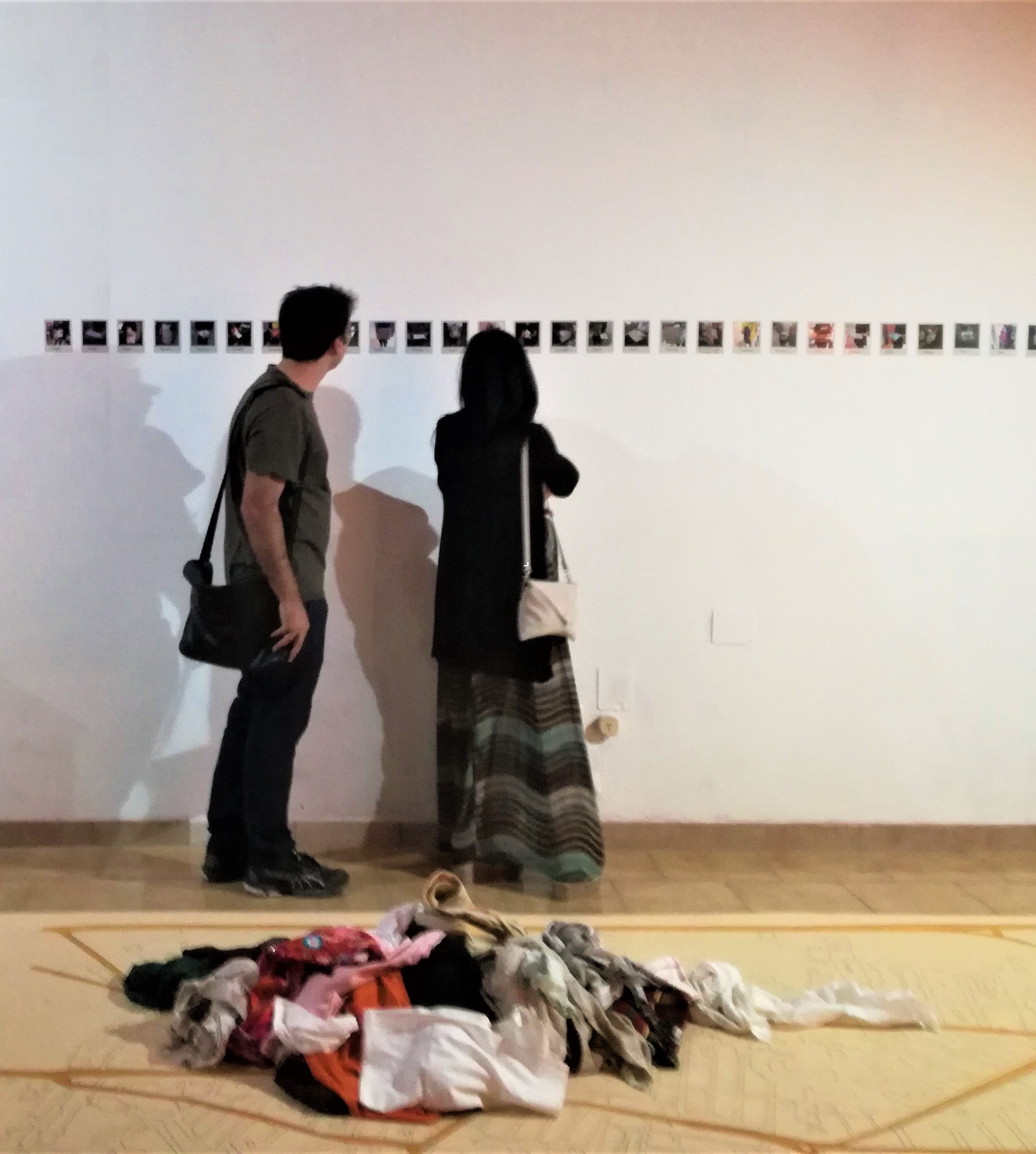 "All'eco spetta l'ultima parola" è l’installazione site-specific realizzata da Angela Capotorto per "commemorare" un evento che è ormai entrato nella storia del paese e che ha segnato gli animi dei cittadini di Palagiano, l’alluvione avvenuta nel 2003. A distanza di anni, proprio come un eco che rimbomba tra le case, l’artista ha chiesto la collaborazione della cittadinanza al fine di individuare i luoghi che sono risultati maggiormente colpiti. Stoffe, ma anche oggetti ancora incrostati di fango, donate dai cittadini e meticolosamente raccolte e documentate dall’artista in scatti fotografici ispirati alla Polaroid one600 del 2003, compongono l’installazione, come totem testimoni del disastro fermi sull’ora del ricordo.