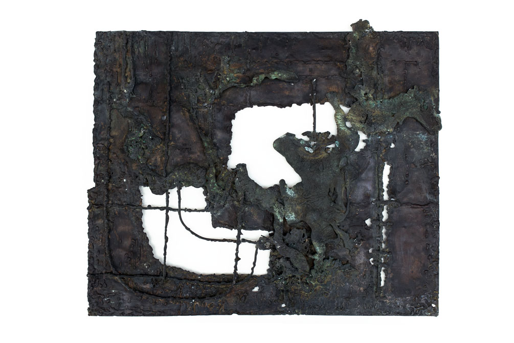 Edgardo Mannucci, uno dei grandi protagonisti della rivoluzione dell’arte informale italiana del dopoguerra, sperimenta la forza dei metalli sottoposti al fuoco della fiamma ossidrica, inventando forme originali, suggerite si da processi fisici e chimici, ma governate dalla propria creatività