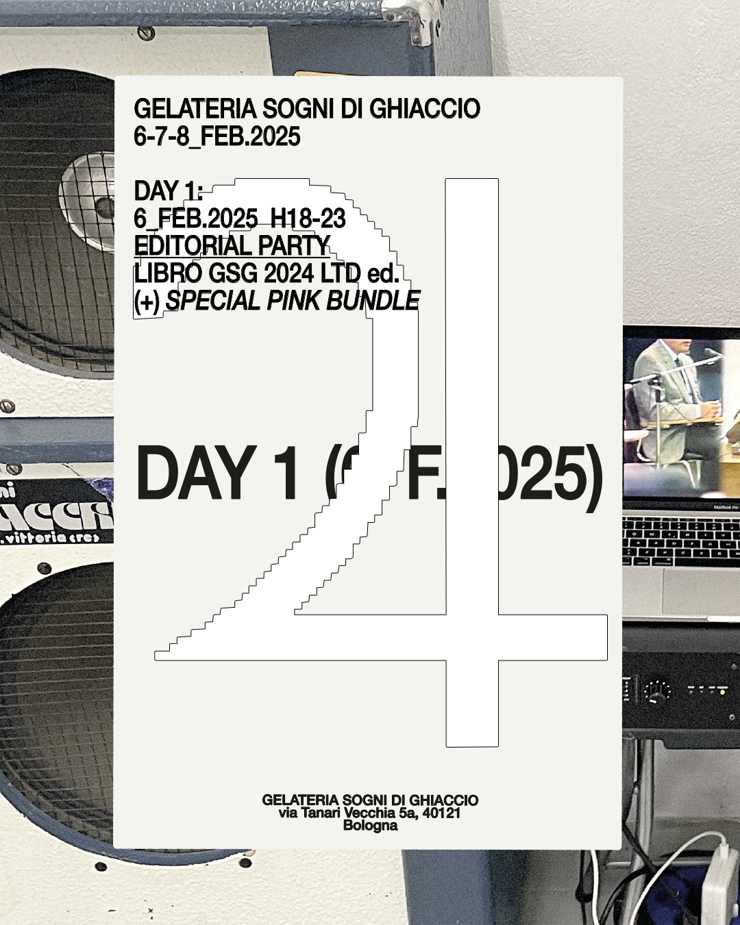 Il libro raccoglie contenuti visivi e letterari creati nel corso del 2024 da tutte le persone e realtà che hanno attraversato Gelateria Sogni di Ghiaccio. La pubblicazione, realizzata da VISIVO e pubblicata da GSG in collaborazione con Condylura, inaugura il display editoriale.