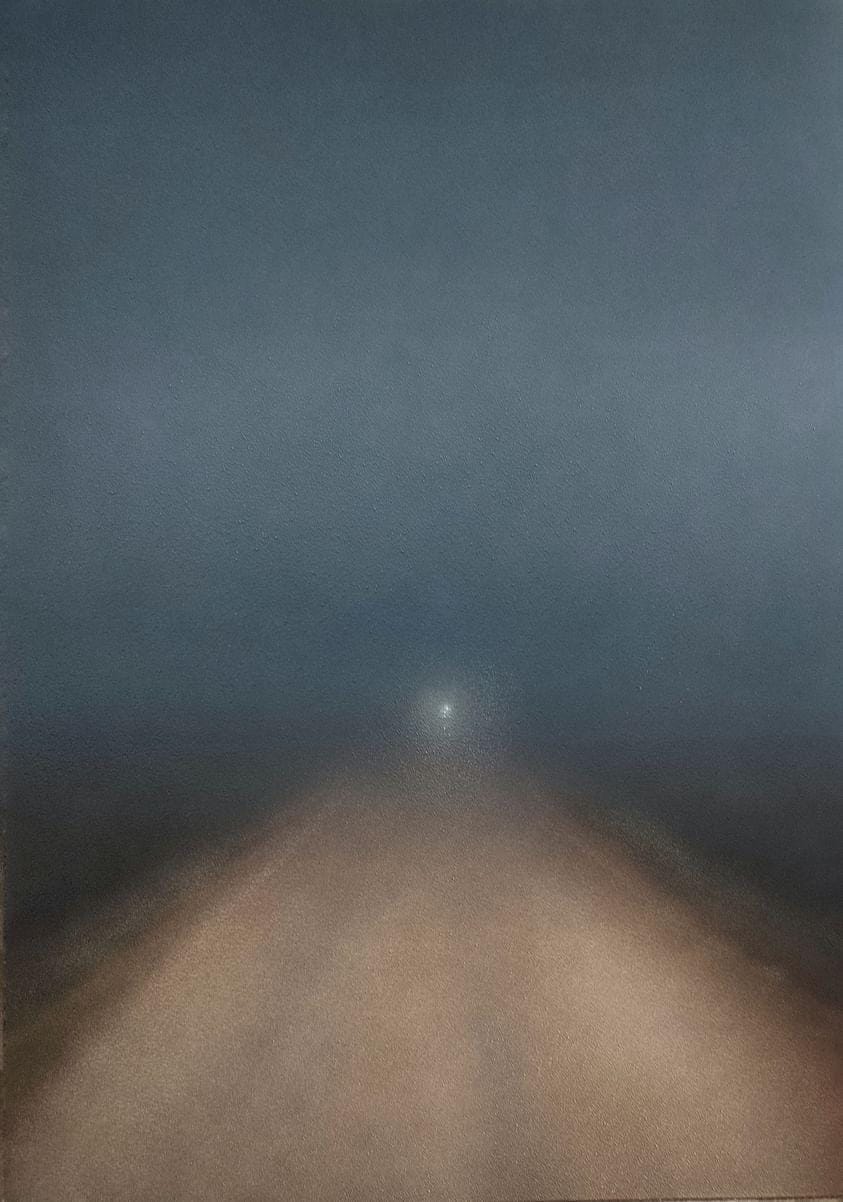 Questo sentimento può essere declinato per descrivere le emozioni che si provano di fronte alle opere pittoriche realizzate da Edoardo Cialfi. Originario dell’Umbria, dove vive e lavora, Cialfi inizia il suo percorso come artista di strada che, armato di sola bomboletta spray, si concentra sulla scrittura del proprio nome. Successivamente approda alla Street Art e, contemporaneamente, completa gli studi accademici alla LABA di Firenze e all’Accademia di Belle Arti di Verona. Nel 2012, a causa di problemi con le autorità, decide di spostare la propria ricerca dai muri esterni a supporti più tradizionali, come tela, tavola o cartone e dal 2017 si concentra sul genere del paesaggio, pur mantenendo fede alla tecnica pittorica a spray.