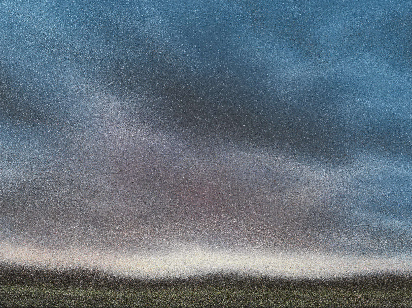 La sua originale tecnica ad aerosol, che unisce costruzione precisa delle forme, libertà del tratto e sintesi additiva dei colori, trasforma ogni veduta paesaggistica in una visione metafisica, innumerevoli strati e velature creano un effetto quasi vellutato che il fissativo siliconico ferma poi sulla tela.