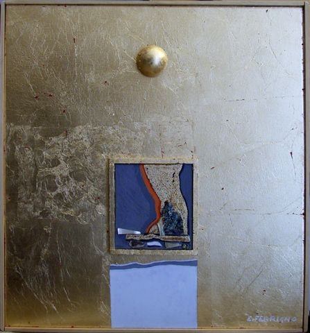 E aggiunge: “Materico e sintetico il laborioso Edoardo Ferrigno. Materico per passione, artefice di ardite fusioni e stratificazioni tra elementi, capace di incantare lo sguardo e di inventare dalla pura geometria luci e forme. Sintetico per scelta, mai ridondante, sempre essenziale e squisitamente sobrio, elegante, pronto a risolvere in purezza il magma cromatico.