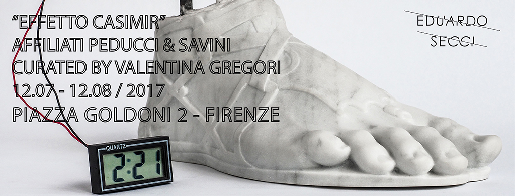 EFFETTO CASIMIR è il titolo del nuovo progetto espositivo degli artisti Affliati Peducci/Savini per la Galleria Eduardo Secci Contemporary di Firenze, curato da Valentina Gregori. Il progetto nasce dallo studio della teoria quantica di Casimir in relazione alla pratica sculotrea degli Affiliati.