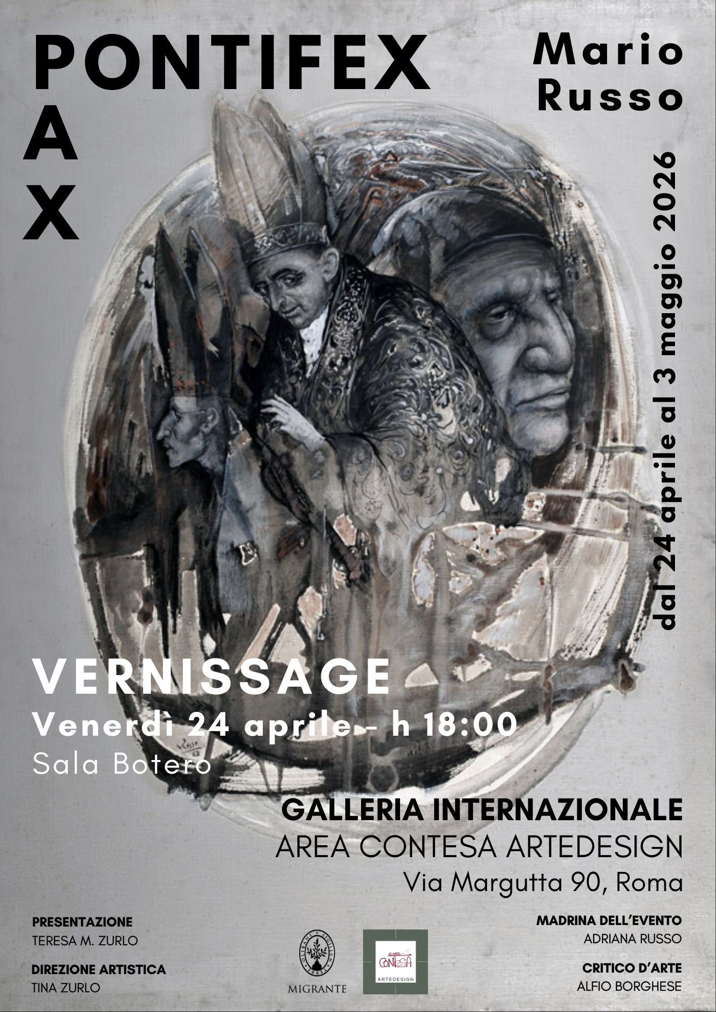 Special artists della mostra sono Mario Russo, artista storicizzato del Novecento, di cui presentiamo un ciclo inedito di opere dedicate ai pontefici con una mini personale dal titolo “Pontifex Pax” e Angela Greco.