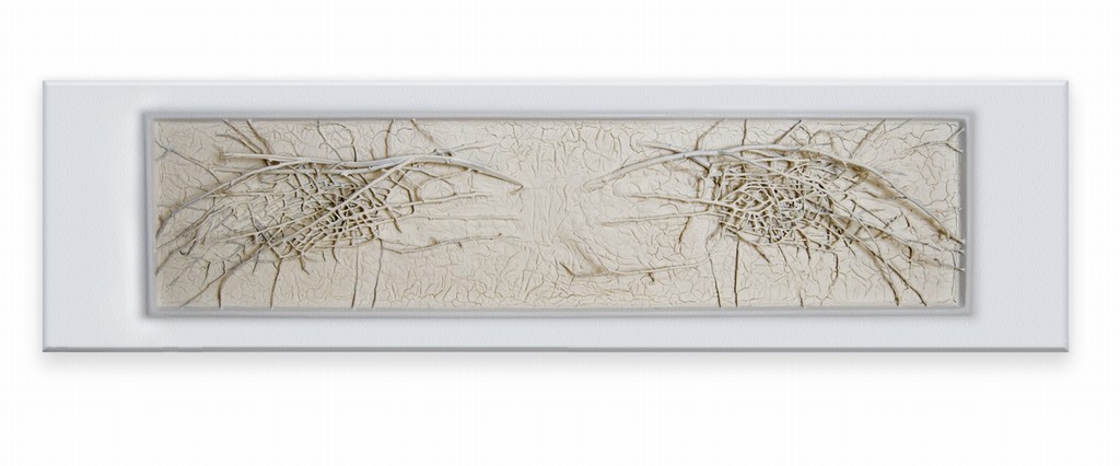 In esposizione una serie di opere realizzate dall’artista veneziano con colla vinilica, legno, carta e acqua, materiali naturali e industriali plasmate per dare nuova linfa vitale a corpi inizialmente inanimati. Il bianco domina. Una sorta di anemia viscerale o purezza assoluta? Le sensazioni suscitate cambiano a seconda del punto di vista e dell’esperienza personale dell’osservatore, ciò che oggettivamente emerge in tutte le realizzazioni artistiche è invece l’unicità del colore scelto, una sorta di marchio d’artista e una prospettiva nuova di vedere la natura attraverso la materia.