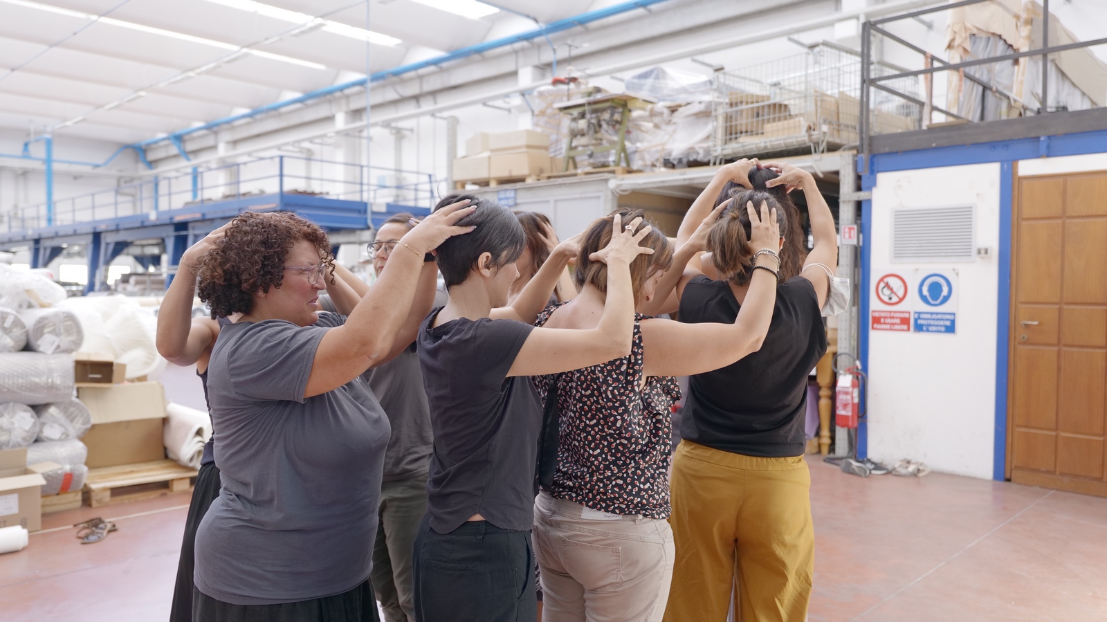Durante l’orario di lavoro, i dipendenti interessati hanno preso parte ad alcuni laboratori d’arte partecipata per lavorare con l’artista sulla propria idea di immagine corporea in relazione ai colleghi e agli spazi aziendali, ma anche sul tema della conciliazione dei tempi di vita e di lavoro.