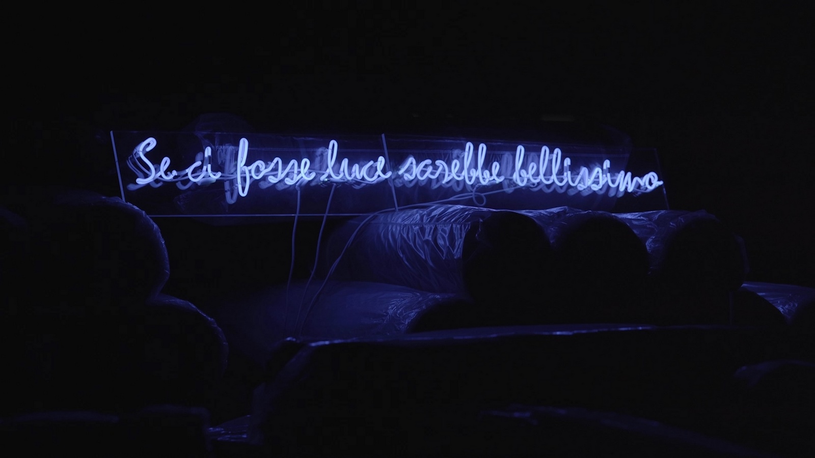 Risultato finale della residenza e fulcro della mostra è il video “Se ci fosse luce sarebbe bellissimo”, realizzato nel gennaio 2023. I gesti del lavoro quotidiano si uniscono ad azioni performative collettive, per tessere nuove relazioni e creare un nuovo habitus. «Un corpo nuovo – scrive la curatrice Nadia Stefanel – pieno di risorse per la fantasia, per le proiezioni e le “irrealizzazioni” immaginarie, come avrebbe detto Sartre. Rappresentato nella sua essenza da quell’abbraccio collettivo dei quattordici dipendenti vestiti con gli abiti-scultura che costituisce l’ultimo frame del video».