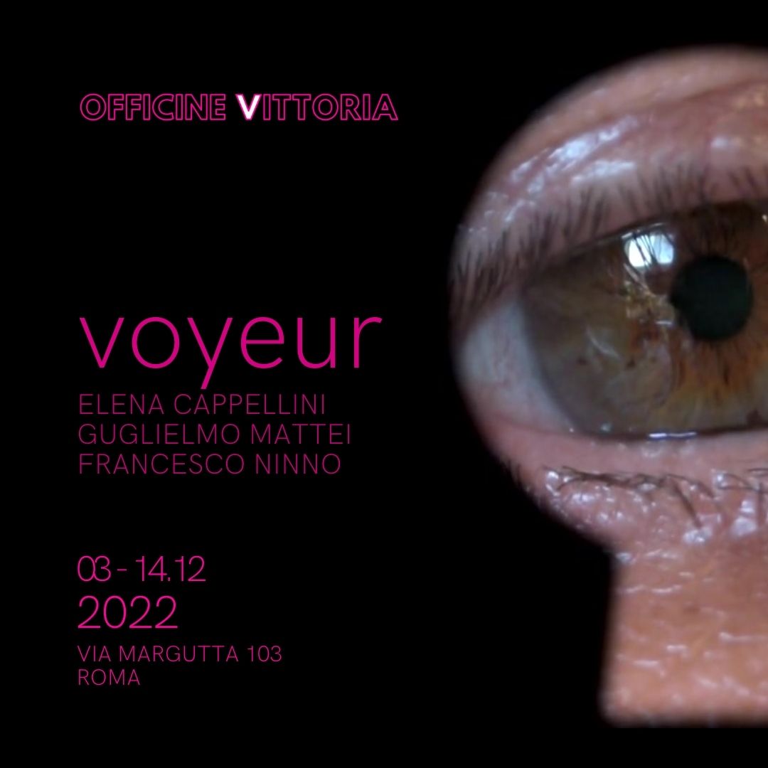 Voyeur ha l’intento di rappresentare il punto di vista artistico dell’intimità attraverso tre artisti: Elena Cappellini, Guglielmo Mattei e Francesco Ninno. Il tema dell’esposizione si concretizza nel titolo scelto: Voyeur, una trasmissione di intimità che si riversa come vasi comunicanti da un’opera all’altra, da una tela ad un canovaccio senza sosta. Gli spettatori che visiteranno la mostra in Via Margutta avranno l’opportunità di conoscere e mettersi in contatto con gli artisti, in un’intima condivisione di idee e di spazio.