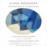 La galleria Studio Masiero è lieta di presentare la personale di Elena Mezzadra “Intersezioni e trasparenze” a cura di Luca Pietro Nicoletti. Artista nata nel 1926 e scomparsa nel gennaio del 2022, era legata dagli anni ’70 alla Galleria delle Ore di Giovanni Fumagalli che la introdusse nella collezione Boschi Di Stefano e a poeti e critici quali Roberto Sanesi e Luciano Caramel. Dopo una importante mostra nel 1992 al PAC di Milano curata proprio da Caramel, ricordiamo, sempre in spazi pubblici, una personale nel 2014 allo spazio Oberdan e un’altra nel 2017 al Museo del Novecento, omaggio al suo lungo percorso artistico.