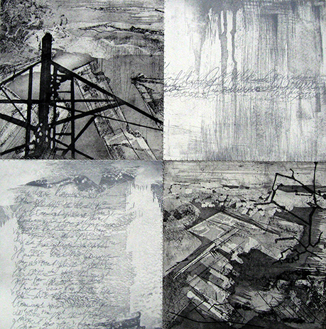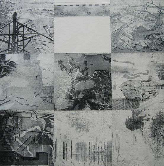 Da diversi anni la poetica di Elena Molena si è concentrata sulle metamorfosi del paesaggio, sia urbano che lagunare. Nelle sue opere l’artista indaga e sperimenta attraverso il segno e la materia, utilizzando le tecniche incisorie come alfabeto privilegiato. Il suo linguaggio assume così un significato simbolico nella percezione del continuo mutare dell’ambiente e dell’identità umana, soprattutto nella relazione con l’altro.