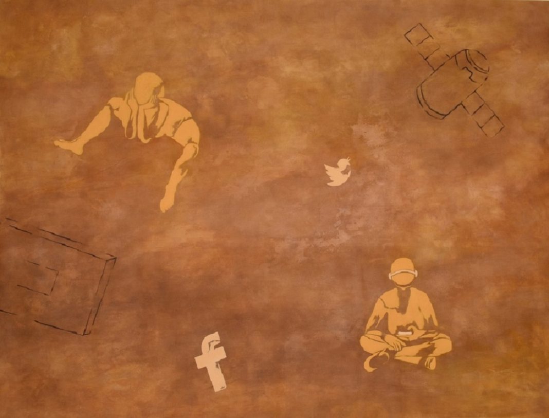 L’artista si fa portavoce di un messaggio in un’epoca in cui le AI prendono sempre più spazio e molti ne temono la prevaricazione nelle arti. Sfida tutto questo con quattro tele di grandi dimensioni, tornando agli albori della pittura, utilizzando un linguaggio arcaico con riferimenti artistici all’arte rupestre delle Grotte di Lascaux. Con le sue opere ricostruisce l’immagine e l’identità di una comunità virtualmente scomparsa, una testimonianza da consegnare alle prossime generazioni affinché ne possano essere sapienti custodi.