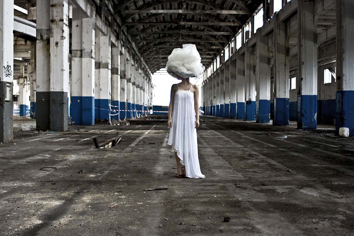 Una scenografia e un nudo, un volto coperto, un palloncino azzurro. Sono questi i calibrati ed essenziali elementi che abitano le fotografie della giovane Eleonora Lauro che inaugura la sua prima mostra presso la Project Room della Raffaella De Chirico Arte Contemporanea.