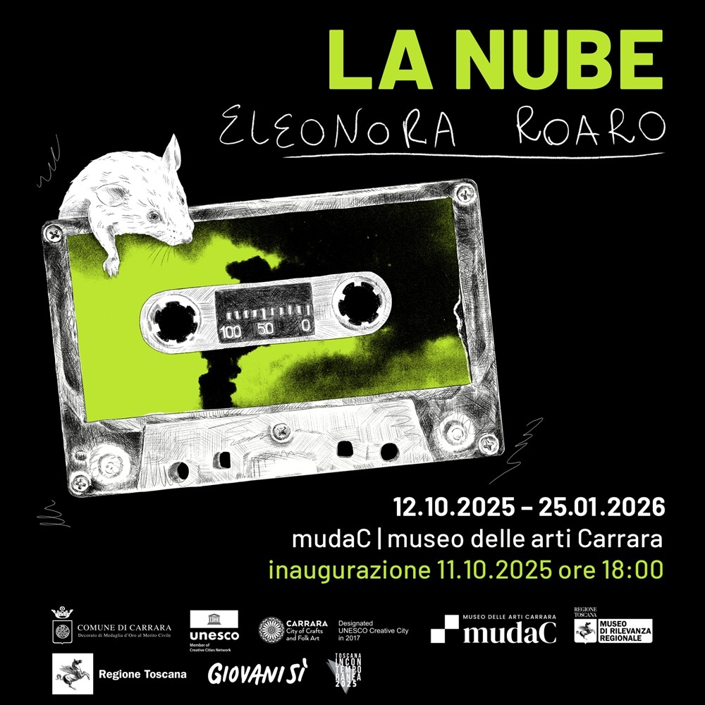 Il mudaC | museo delle arti Carrara presenta LA NUBE, la mostra personale di Eleonora Roaro, promossa dal Comune di Carrara e a cura di Cinzia Compalati e Vanina Saracino, che inaugura sabato 11 ottobre 2025 alle 18 e rimane aperta al pubblico fino al 25 gennaio 2026.