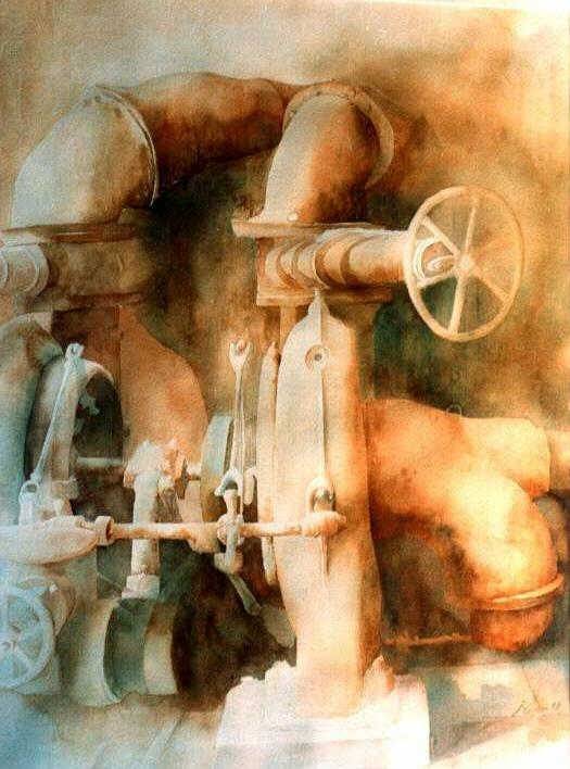 In concomitanza con il XIII Convegno Internazionale di Archeologia Industriale che si svolgerà a Terni nel mese di settembre, la locale Pinacoteca Comunale ha organizzato presso la sede della Cappella Gentilizia di palazzo Gazzoli la mostra personale di Elia Cosimi, pittrice umbra di nascita ma romana d’adozione, dal titolo “Il silenzio del ferro”. Sono esposte una serie di opere in cui l’artista presenta la sua più recente produzione dedicata alla rappresentazione di macchinari o vetusti strumenti di lavoro che sono ormai diventati reperti di archeologia industriale. “Cosimi ha subito la fascinazione dell’oggetto industriale e delle complesse strutture realizzate dall’uomo – scrive Francesco Santaniello nella presentazione in catalogo - Strutture che possono essere sia meccaniche, sia architettoniche, ingegneristiche o urbanistiche. La pittrice romana ha captato la bellezza degli elementi metallici, « duri, fissi e utili, dai colori locali puri, in cui l’acciaio nelle sue infinite varietà giocava accanto ai vermigli e ai blu. [Dove] la potenza geometrica delle forme dominava il tutto.” (Legér) Elia Cosimi è attratta da questi elementi, o per l’esattezza da alcuni particolari di essi, che assume come soggetti per la sua ricerca artistica, elevandoli al rango di oggetti estetici. Cosimi rappresenta soprattutto particolari di vecchie macchine agricole o di motori, ingranaggi di fabbriche dismesse, strumenti di lavoro o macchinari ridotti a reperti di archeologia industriale, che ancora oggi dimostrano con evidenza l’ingegnosa evoluzione tecnica dei meccanismi assemblati dall’uomo. L’artista descrive con meticolosa attenzione le varie componenti delle macchine (bulloni, tubi, ghiere, bielle, giunti, ecc.) inquadrandole secondo un taglio compositivo di tipo fotografico. [...]