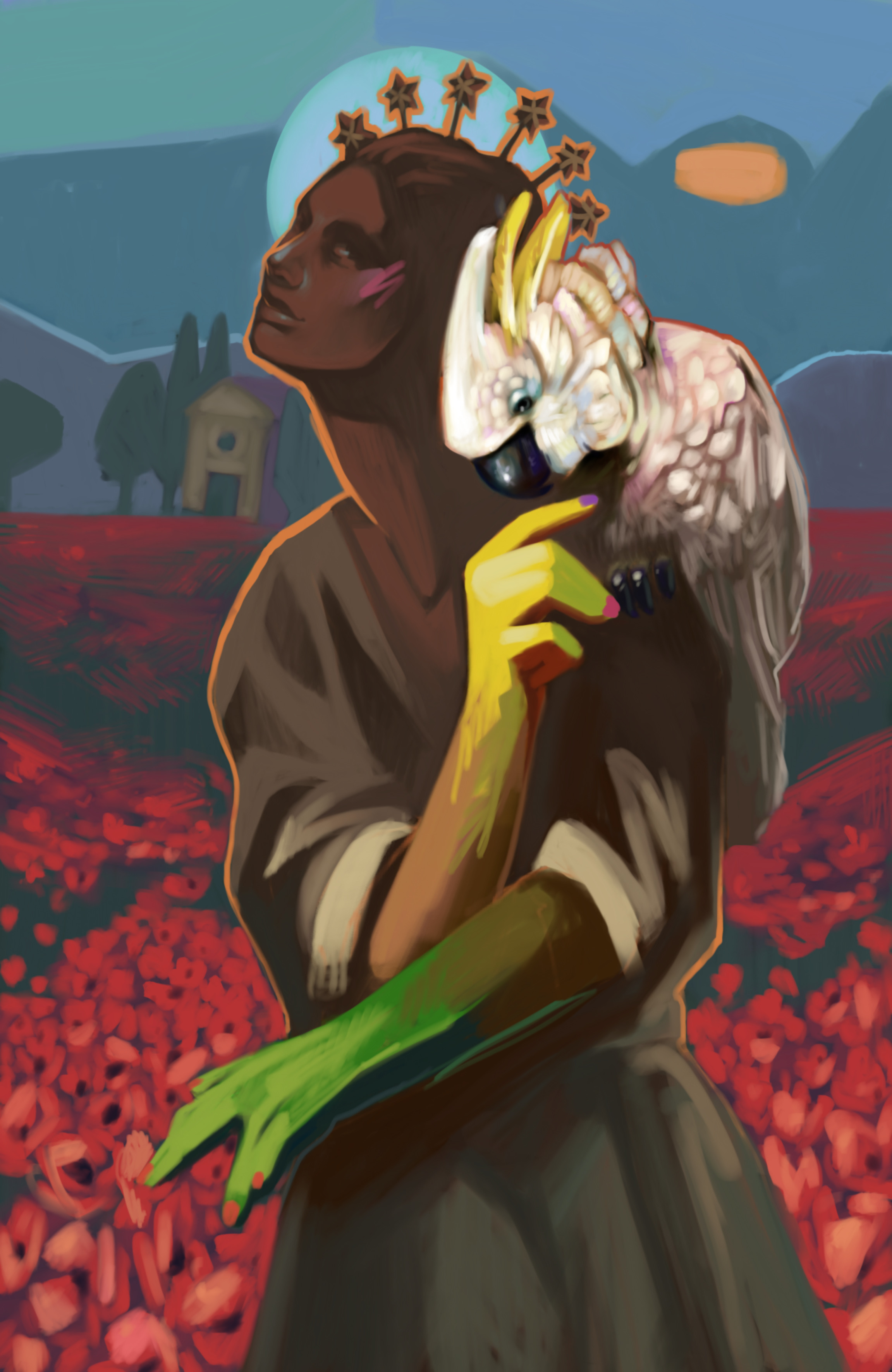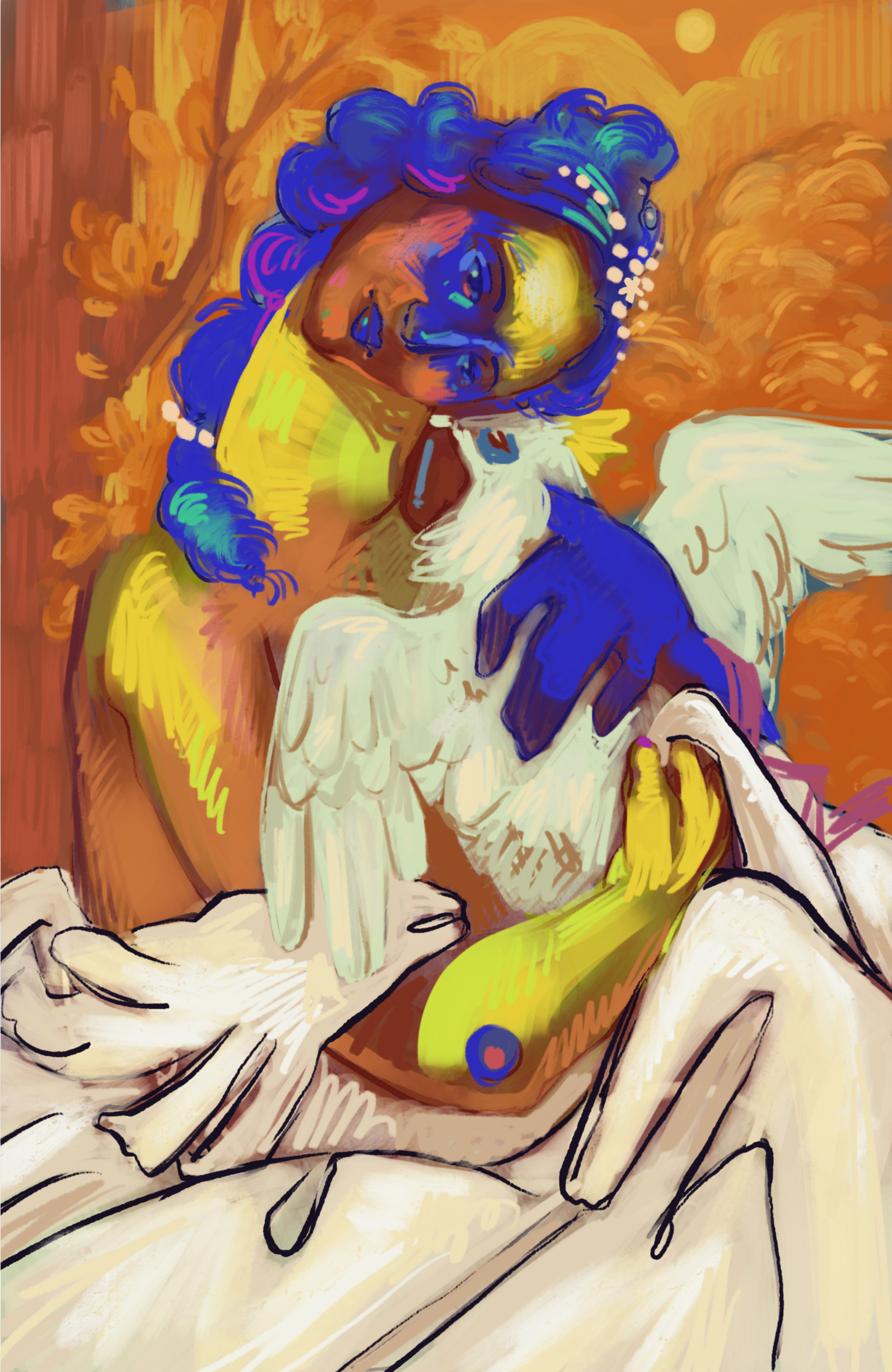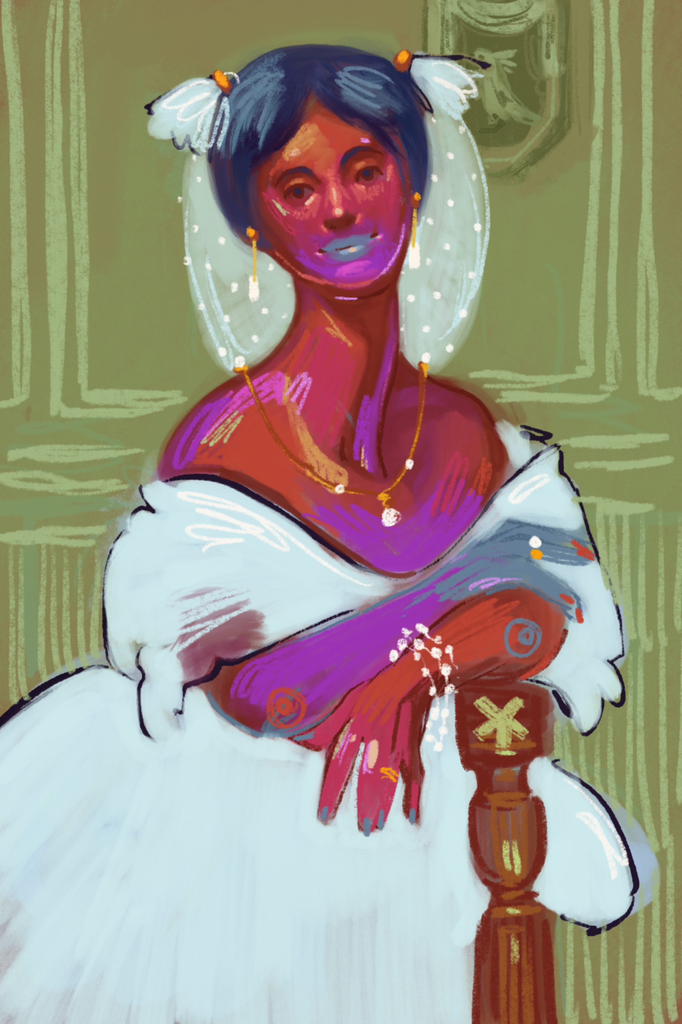 Racconta l’artista: “Durante il lockdown mi affacciavo e vedevo le strade vuote e grigie, nonostante la primavera fosse pronta a sbocciare. Per esorcizzare la solitudine ho riempito le mie giornate immaginando figure femminili ricche di colori caldi e vivaci, che poi sono diventate il cuore della mostra”.