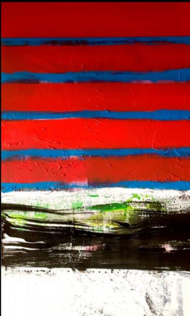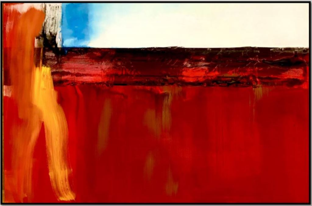 Pittura senza dubbio astratta per certi tracciati e percorsi che ogni tanto vi compaiono, ma molto vicina anche all’Informale per libertà gestuale e immediatezza cromatica, comunque in equilibrio costante tra questi due poli espressivi.