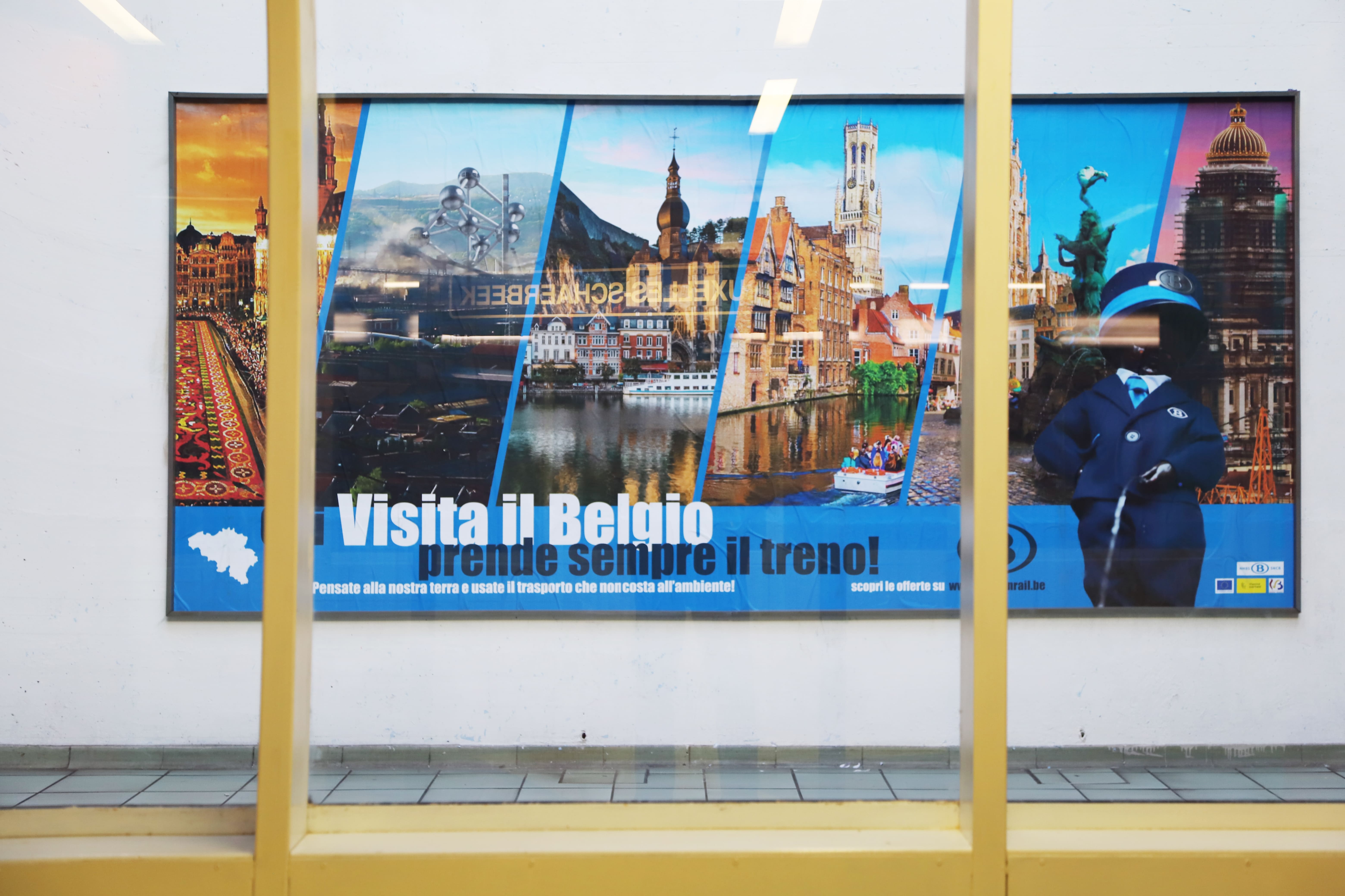 Cafmeyer mette in scena un paradosso: dentro SERRA siamo a Bruxelles, sul muro della stazione un poster, con una finta pubblicità del ministero del turismo belga, ci ricorda che siamo in Italia. Scrive ancora Maestrale: “Il fake e l'assurdo sono spesso strumenti per ipertrofizzare alcune problematiche del sistema, e nel nostro caso il manifesto pubblicitario "Visita il Belgio!" indica quanto il funzionalismo che normalizza i nostri spostamenti sia principalmente volto all'economia del turismo (e non, ad esempio, allo sviluppo generativo delle comunità)”. Questo elemento assurdo, che si somma alla contrapposizione tra rigore delle indicazioni di mobilità urbana e rottura nello spazio-tempo attuata dalla presenza simultanea delle due stazioni, ci mostra che nulla è come sembra e la stazione non è reale ed è inaccessibile: il postoIMPOSSIBILE di Elias Cafmeyer.