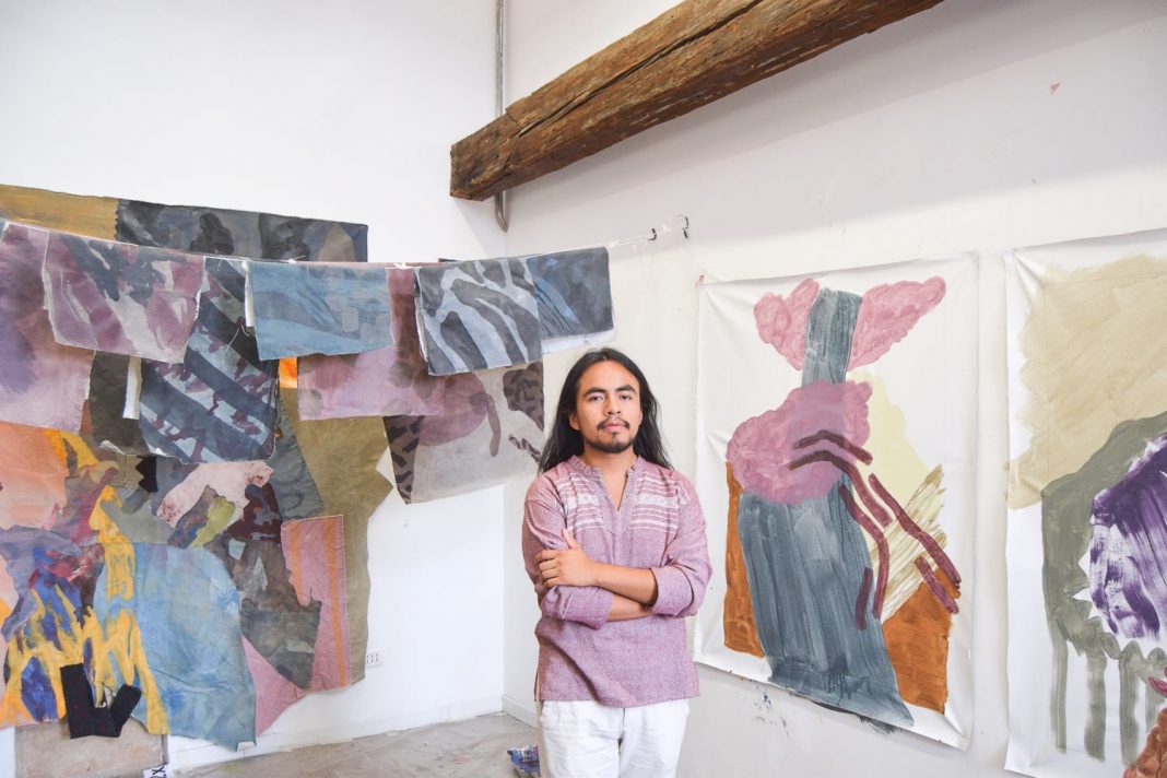 The practice of Eliel David Pérez Martínez (Oaxaca, Mexico, 1998) is based on the use of the medium of painting and fabric, which are employed both in two-dimensional form and in sculptural mode. Her works are characterized by bright colors and vibrant backgrounds, frequently animated by fluid forms and geometric patterns. The recurring themes of his research have to do with his own personal experience, the cultural experiences of Mexico, and social criticism, originating from the analysis of cultural, anthropological and economic factors. Pérez Martínez graduated from the Academy of Fine Arts in Oaxaca and then Venice, and was among the artists in residence at the Fondazione Bevilacqua La Masa, Venice. His solo exhibitions have been hosted by Suburbia Contemporary Gallery, Barcelona, and Ethra Gallery, Mexico City. He lives and works in Venice.