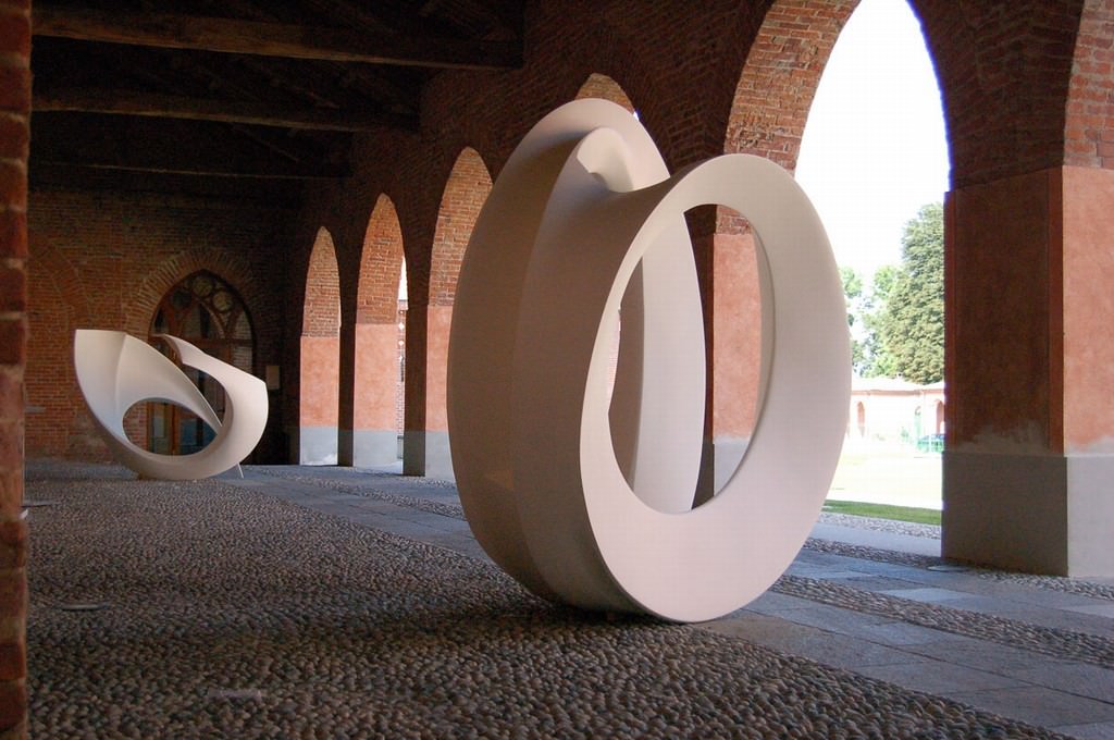 La prima parte dell’esposizione prevede una sezione dedicata esclusivamente agli inediti in ceramica, realizzati dall’artista durante la sua prima fase di sperimentazione, successivamente si potrà godere delle grandi sculture in bronzo lucidato a specchio e in bronzo nero, e in ultimo una serie di bozzetti preparatori per opere di dimensioni monumentali realizzate per l’occasione e distribuite nella città di Chivasso, come il grande arco di lastre in acciaio corten dal titolo “INarco”