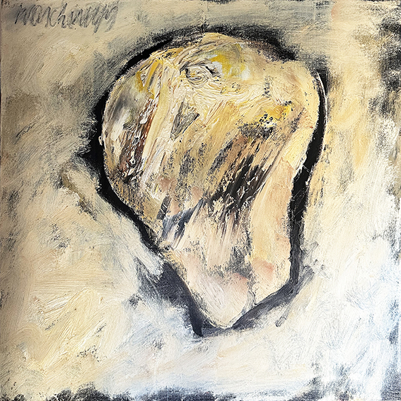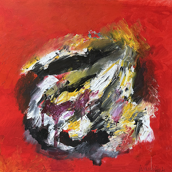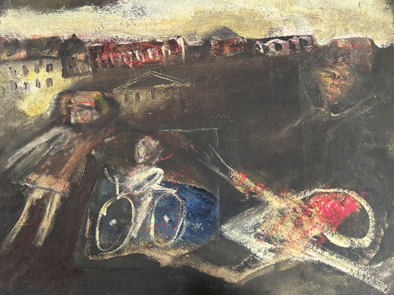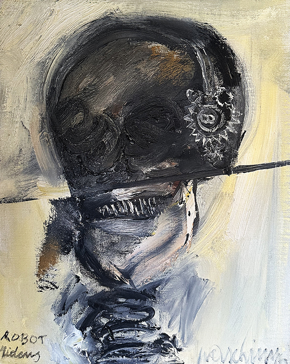 Come sottolinea la curatrice, “di Elio Waschimps, scomparso nel 2022, si parla ormai troppo poco. Artista riservato ed introverso, Waschimps (…) popola le sue tele di creature solitarie e vulnerabili, segnate dagli orrori della guerra e della violenza. Attraverso queste figure, l’artista ci conduce nei meandri più oscuri dell’inconscio, invitandoci a confrontarci con le paure e le fragilità che spesso preferiamo ignorare.”