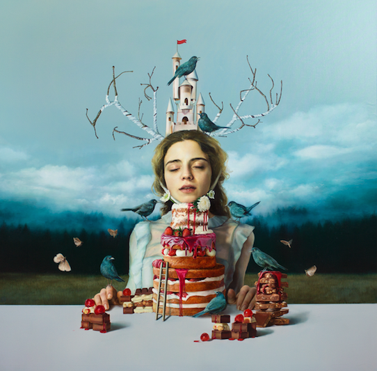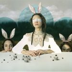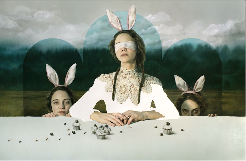 Un’atmosfera sospesa a metà tra realtà e la finzione, l’ambiguità di uno sguardo aperto e chiuso, rivolto allo stesso tempo verso l’esterno e verso l’interno. Donne e adolescenti, animaletti, dolci, pizzi e merletti che paiono usciti fuori dalle pagine di una fiaba in continua evoluzione.