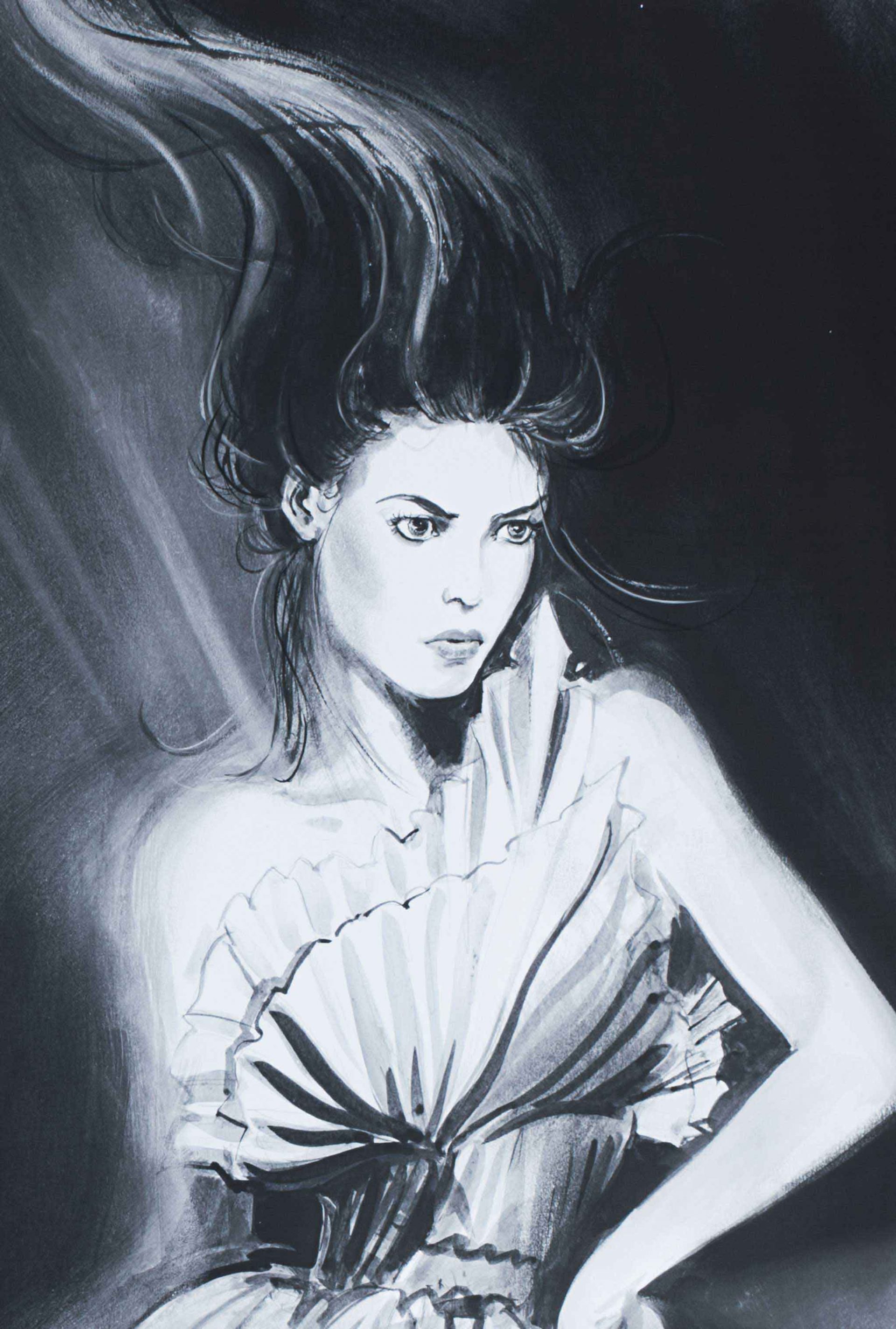 La figura femminile è il fil rouge che caratterizza le scene artistiche esposte in mostra. Interpretazioni in chiave estetica della Donna ammaliante, intima, misteriosa, estrapolata dal mondo della moda e raffigurata a tutto campo su tele con colori monocromatici e abbaglianti effetti di chiaroscuro