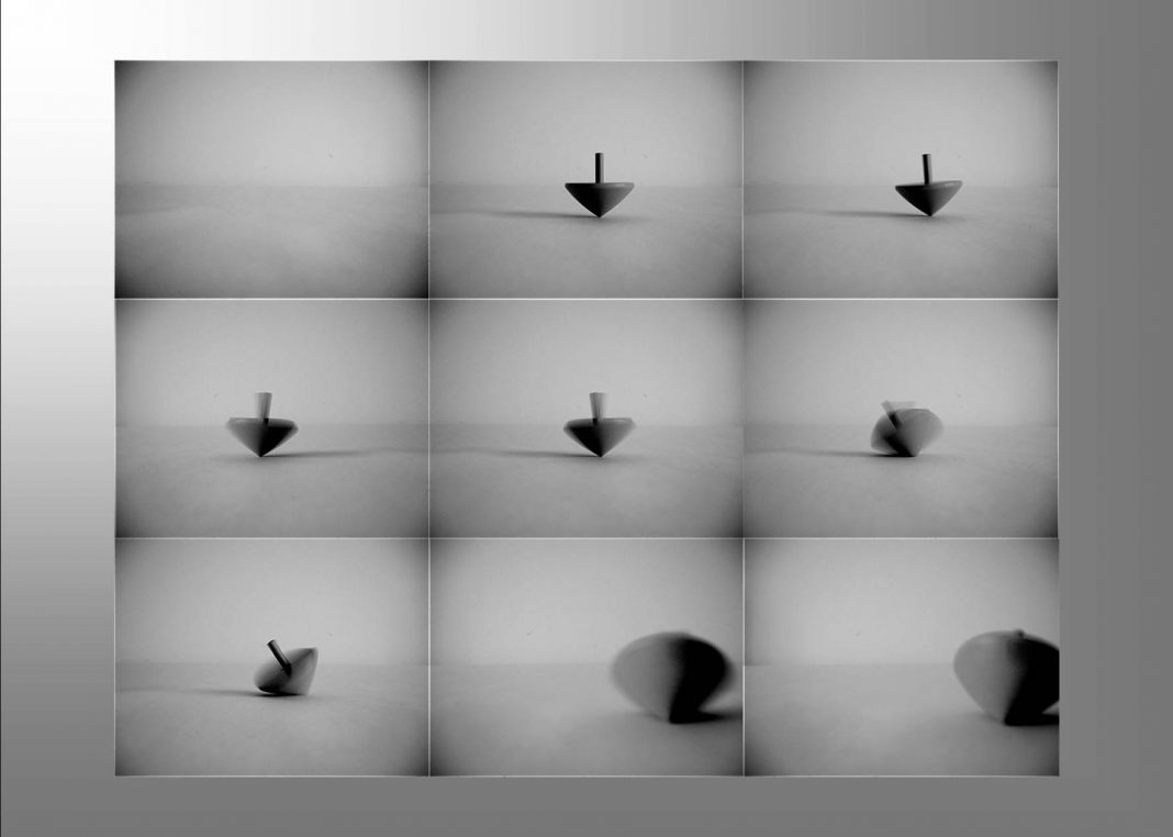 Di questo grande gruppo di trottole una parte viene fatta girare, l’altra rimane ferma, sottolineando non solo la precarietà, ma anche l’impossibilità a volte di potersi muovere.