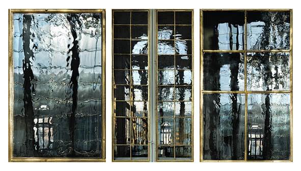 Attraverso il suo lavoro Elisa Sighicelli compie un’indagine intorno al linguaggio artistico e fotografico, alle modalità di rappresentazione e di percezione della realtà. Le finestre della Veranda juvarriana, affacciata sullo Scalone d’onore, diventano il soggetto di due grandi trittici e di alcune opere singole in un’esplorazione dell’idea di riflesso e trasparenza. Al centro delle opere il vetro, elemento che con i suoi effetti ottici destabilizza e dissolve il soggetto degli scatti fotografici e al contempo fornisce all’artista un filtro attraverso il quale osservare l’architettura del Palazzo. La scelta accurata del supporto di stampa, un leggero tessuto serico, e la modalità di presentazione, che lascia liberi i teli di muoversi sulla parete accrescendo l’ambiguità tra il reale e il rappresentato, creano una tensione tra la fotografia come oggetto e l’immagine reale. Le fotografie sembrano così fluire, come specchi d’acqua increspati, suggerendo una visione onirica.