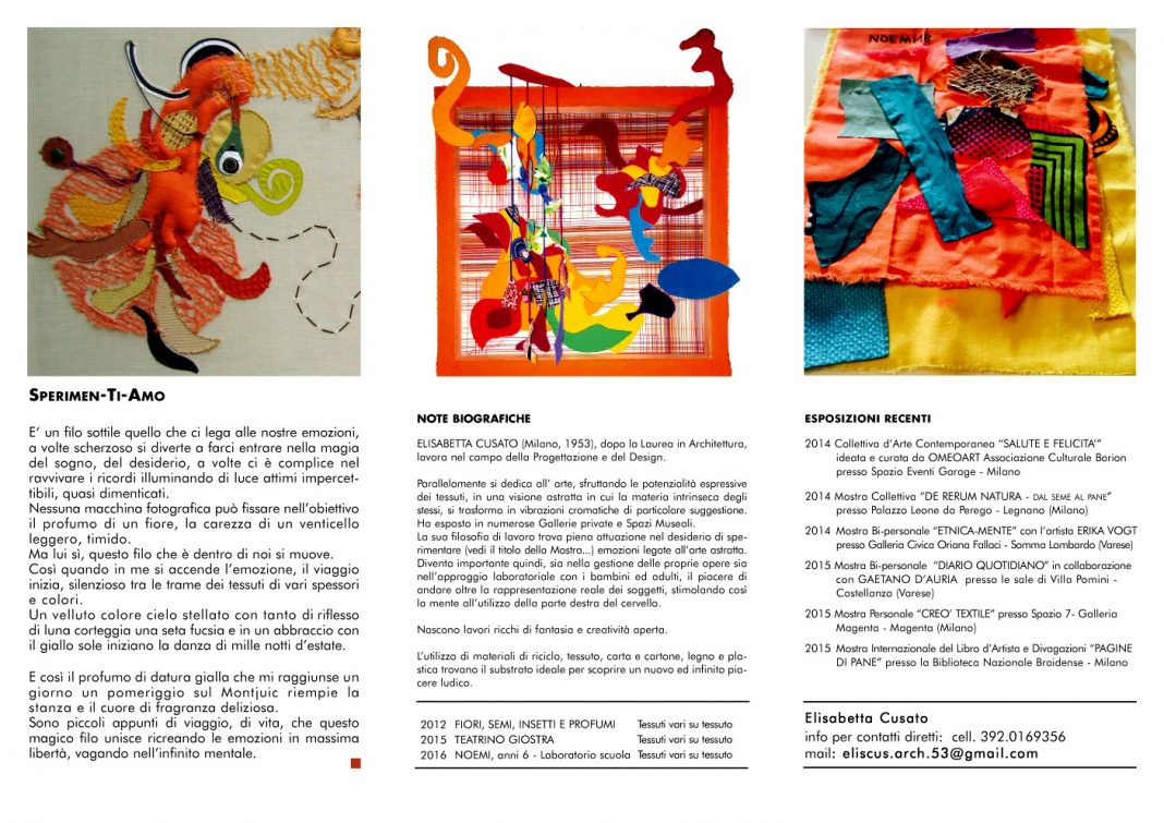 "Sono piccoli appunti di viaggio, di vita che questo magico filo unisce ricreando le emozioni in massima libertà, vagando nell'Infinito mentale" (E. Cusato).