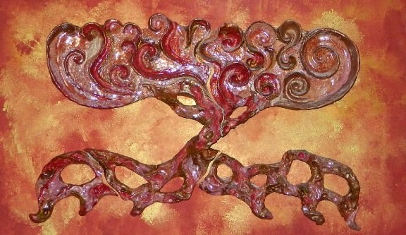 Su un repertorio iconografico personale ormai consolidato, ultimamente Elisabetta Pieroni ha imbastito un'appassionata ricerca tecnica e polimaterica; le iridescenze date dai nuovi smalti impiegati dialogano con materiali estranei all'ambito ceramico come frammenti di specchio, inserti di rame e ottone, supporti in plexiglass trasparente e aeree spirali realizzate con il filo di ferro.