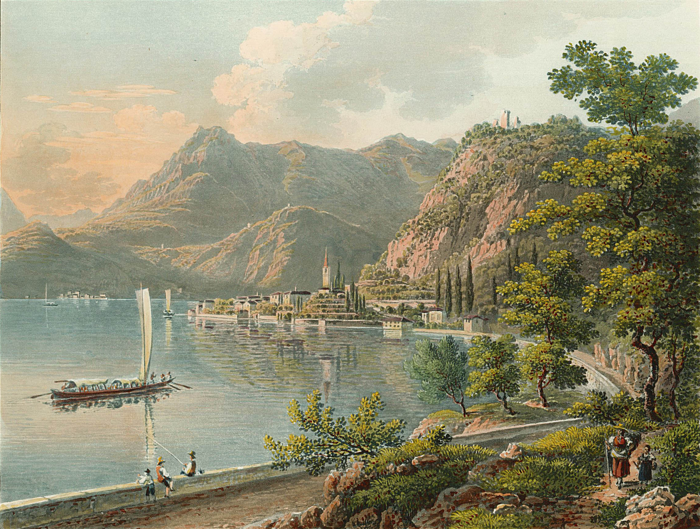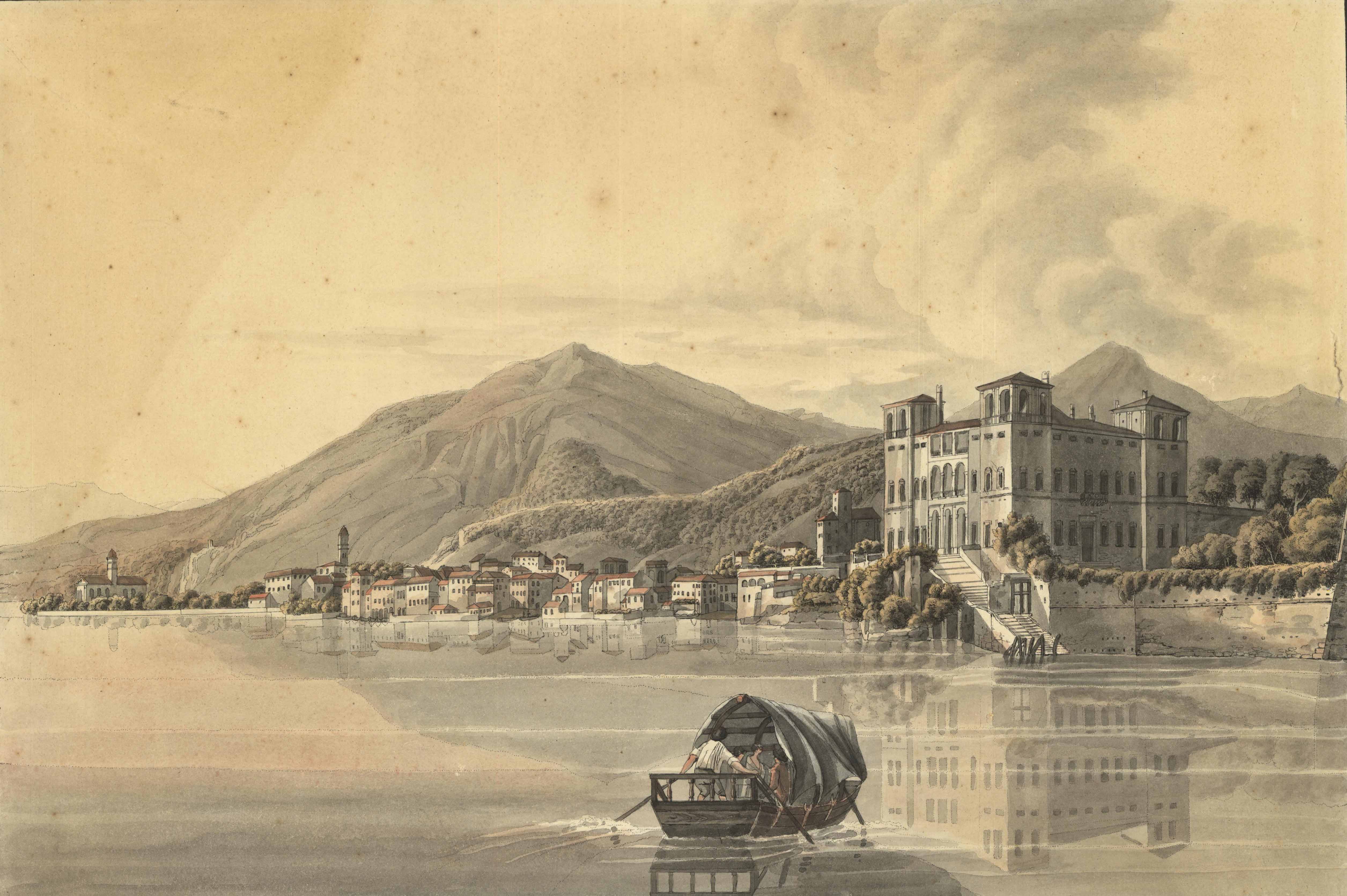 Fra gli autori italiani delle vedute si segnalano Girolamo Mantelli, artista attivo fra la fine del XVIII secolo e l’inizio del XIX secolo, di cui sono esposte due immagini dedicate al porto di Como e al Balbiano, Giuseppe Bisi, che fu docente di pittura di paesaggio all’Accademia di Brera, e Giuseppe Elena, pittore e incisore.