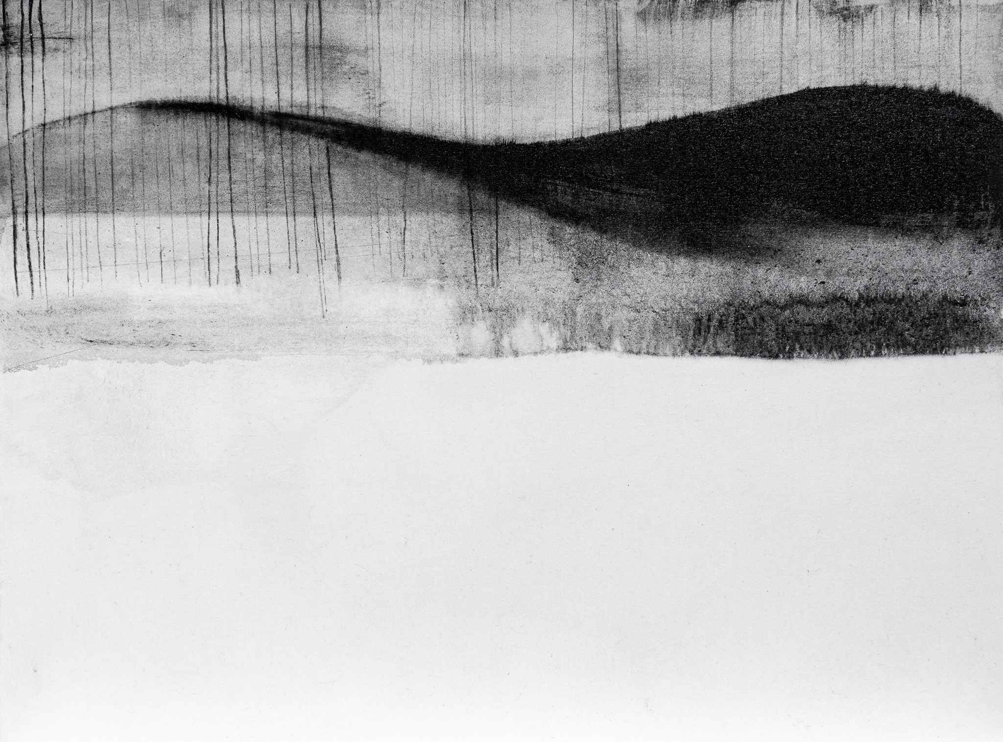 inchiostro e olio, si distinguono per un’atmosfera sospesa e rarefatta: visioni oniriche, tracce