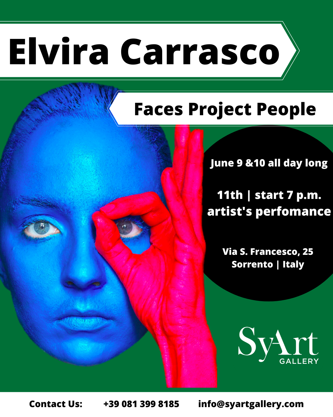 Elvira Carrasco, visual artist di origini spagnole, vincitrice del Premio BMW Fata Verde nel 2020 durante la quarta edizione del SyArt Sorrento Festival, torna a Sorrento con "Faces Project People".