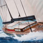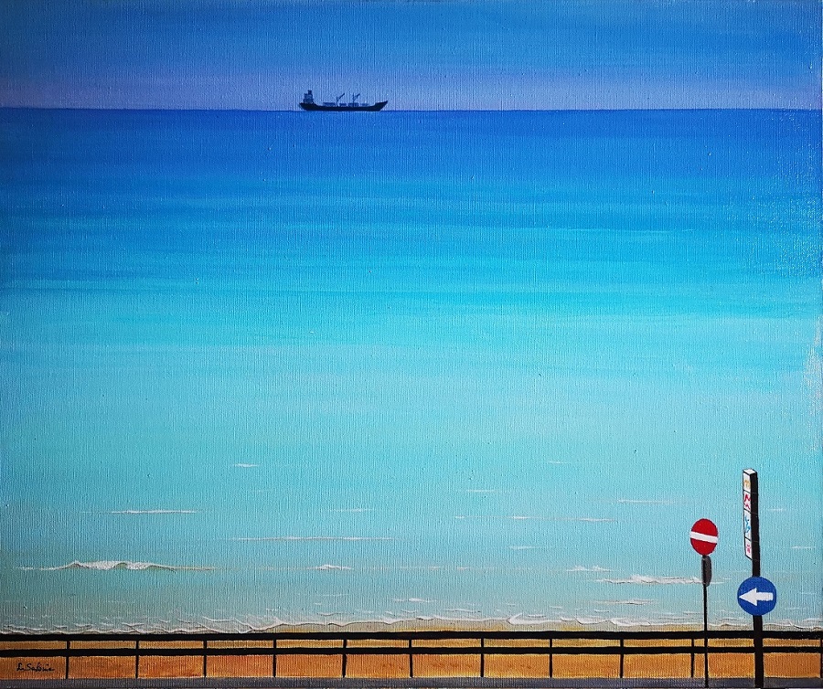 Sedotta dal fascino del mare, principale musa ispiratrice, Salonia cerca di cogliere su tela ogni vibrazione, attratta da quella linea d’orizzonte che demarca l’acqua dal cielo. Con un tratto piatto genera composizioni che riflettono una antica tradizione figurativa, ancorata al dato realistico.