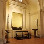 transetto, riflettono una luce solenne. Alla base, una traccia di nero: il ricordo del