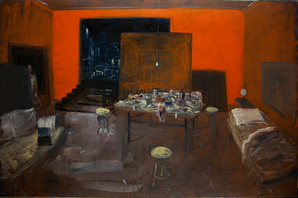La personale permette di osservare l’evoluzione del soggetto dell’atelier d’artista, che procede dalla figurazione dai toni espressionistici al prosciugarsi del linguaggio in chiave astratta, fino a una nuova gestualità più libera e ricca, che esplode nel colore e nella matericità della texture.