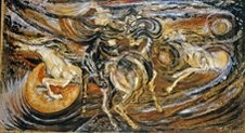 La sua tecnica dagli effetti di marmorizzazione è unica, così come l’elaboratissima china su carta, su legno, addirittura su-dentro la pietra, operazione complessa per far penetrare l’inchiostro fin nelle fibre e rin-tracciare i profili di volti, dove la scultura e la pittura si confondono, la natura e l’umanità, la natura e l’arte. Unico, più esplicito riferimento è Michelangelo, oltre che nell’approccio all’operazione artistica anche nell’anatomia delle figure, nelle mani, specialmente nelle intense Maternità e nei suoi celebri Cristi, dove s’avverte la forza e la grazia del Buonarroti. Anche se nell’ultima produzione Modica ha attenuato l’impeto giovanile e le tinte cupe si sono schiarite e riversate in un mistico azzurro, è solo perché la rabbia e il grido si sono convertiti in preghiera silenziosa e struggente, in volo di pace, d’ostinata fede nella vita.