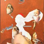 Liturgia per carillon di Emanuele Sartori presenta collage dipinti a mano in cui fotografie, ricordi d’infanzia e oggetti del passato vengono ricomposti sulla tela attraverso una tecnica lenta e meticolosa e rimandano a un’infanzia inquieta, tra gioco e malinconia.