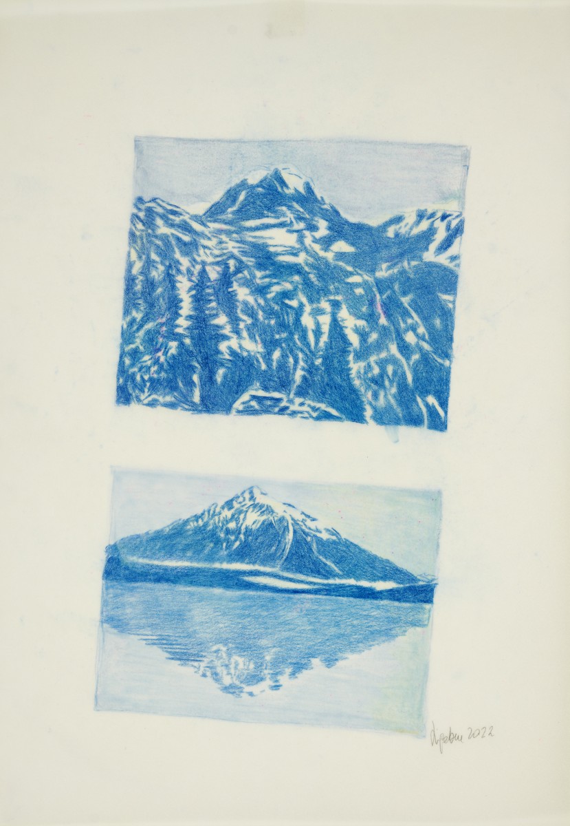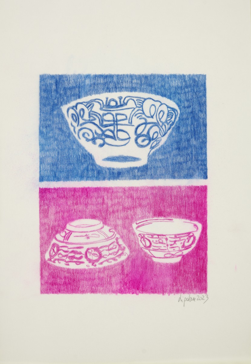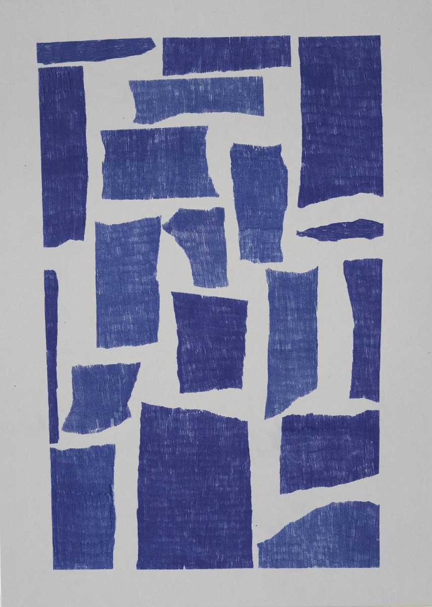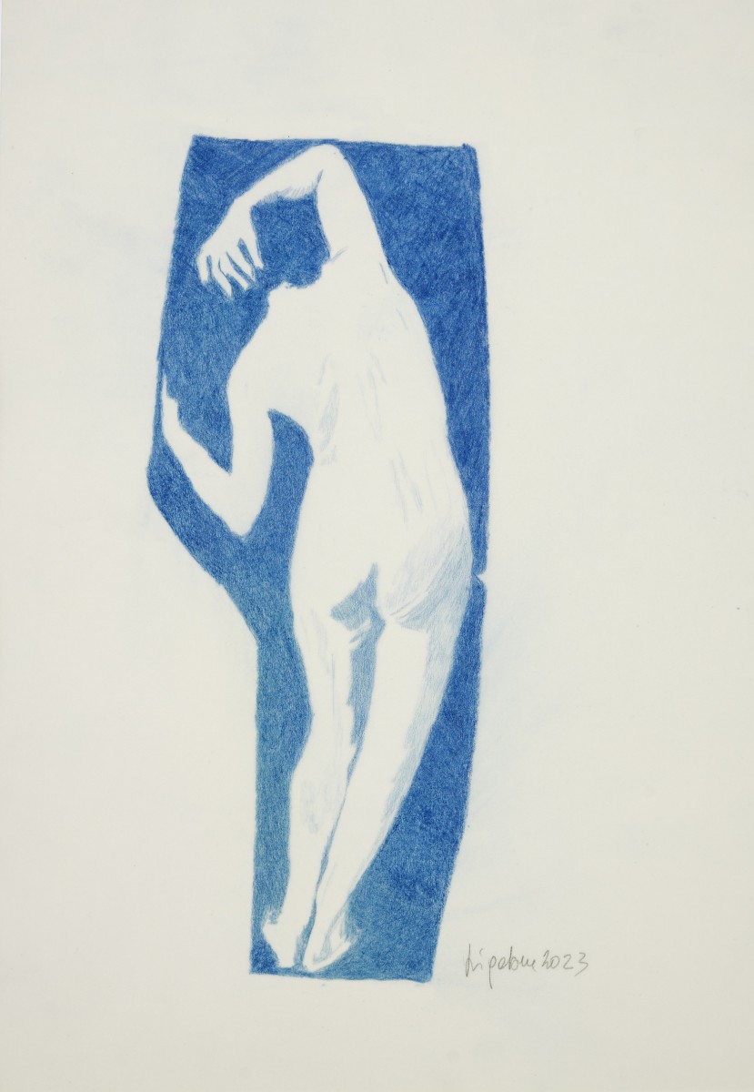 «Con questo nuovo corpo di lavori – spiega la curatrice Melania Gazzotti – Emi Ligabue vuole portare il visitatore a riflettere sul ruolo della “riproduzione” e della “serialità” all’interno dell’arte contemporanea: un dibattito particolarmente caro all’arte concettuale, che l’artista riesce a trattare restando in equilibrio tra rigore e ironia. Ad essere messa in discussione è anche la sacralità del gesto creativo, che la Ligabue questiona presentando delle opere che sono il frutto di un lungo e meticoloso lavoro manuale, ma i cui soggetti non sono originali. La palette è quella imposta dai materiali stessi utilizzati dall’artista: blu, nero rosso e bianco per i monocromi, realizzati con carta carbone, e blu, rosa, nero per le immagini riprodotte con le matite copiative.»