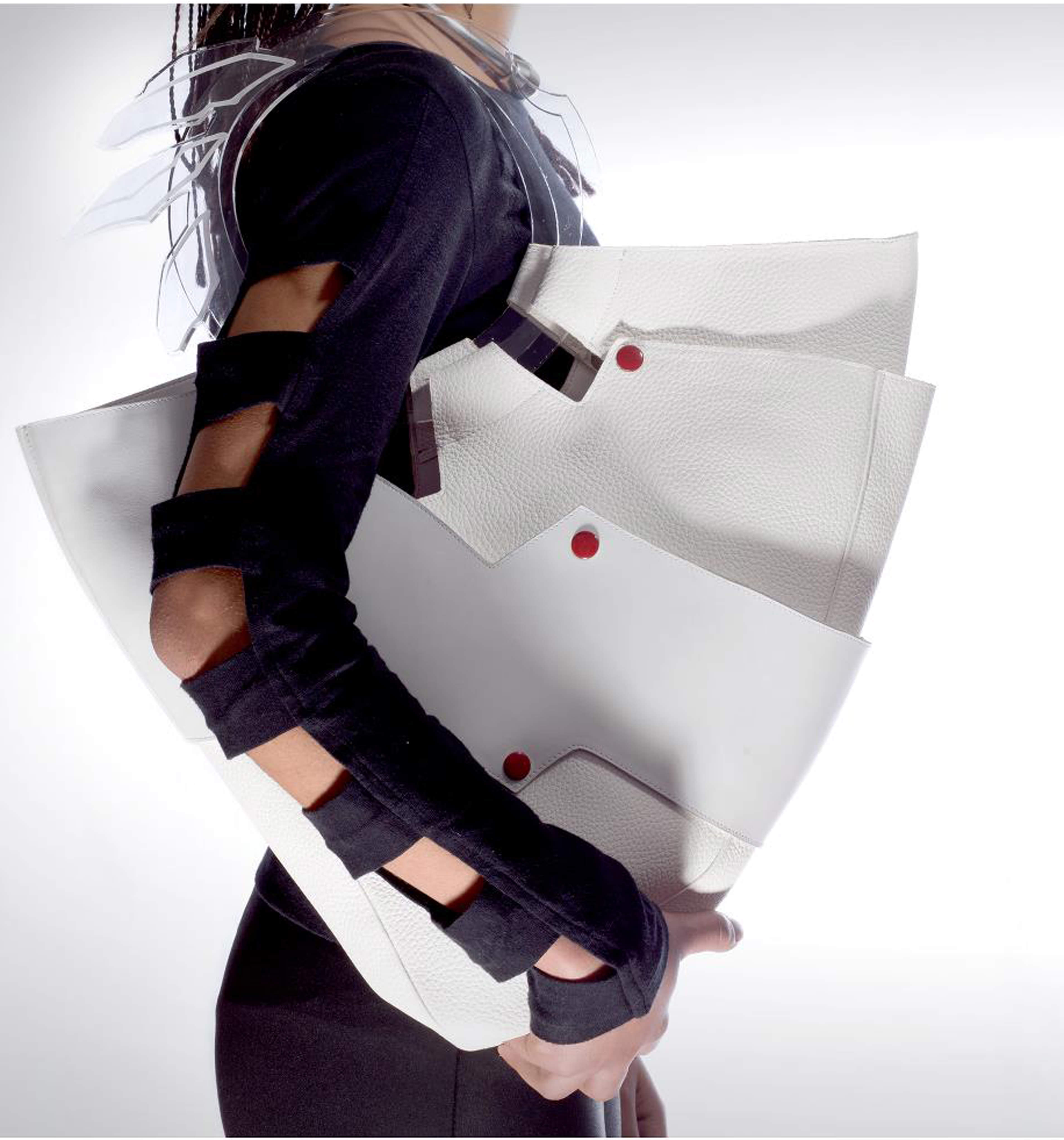 Il contatto con macchine CNC e tecniche di lavorazione "on demand" propri della produzione industriale, spinge la designer a sperimentare la combinazione di materiali come il plexiglass o l'alluminio con il cuoio e la pelle, legati invece a processi di lavorazione artigianali. Il recupero di capacità manuali e creative,che nelle lavorazioni industriali vengono perdute, infatti è una costante del brand Libra insieme a una ricerca stilistica che sia espressione di equilibrio tra forme e geometrie ad incastro: dalla rivisitazione in chiave biomeccanica delle forme suggestive che si osservano in natura,l'obiettivo infatti è quello di proporre un prodotto dallo stile fortemente futuristico.La scelta dei materiali e dei colori evidenziano il design organico e al contempo Hi-tech dell' accessorio.