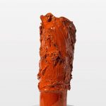 Emiliano Coletta affronta senza schematismi e paludamenti il grande dilemma tra decorazione e significato, lavorando sulla forma astratta come unica possibile per lui. Propone in mostra le sue Bagatelle, sculture ceramiche nate negli ultimi due anni dal titolo che minimizza con leggerezza l’antica diatriba: può la ceramica, materiale tradizionalmente funzionale, essere un medium artistico? Il colore, la brillantezza della ceramica aggiungono o tolgono alla scultura? Opere che nascono volutamente da una tecnica ‘sbagliata’ – ammesso che esista una tecnica giusta nell’arte – tanto nei tempi, quanto nella modellazione e nel mix degli ossidi colorati che usa anche a terzo fuoco. Ossidi che danno quel colore e lucentezza per lui fondamentali: non una poetica dei materiali, ma materiale che si presta all’idea cercando uno specifico cromatico della forma scultorea.