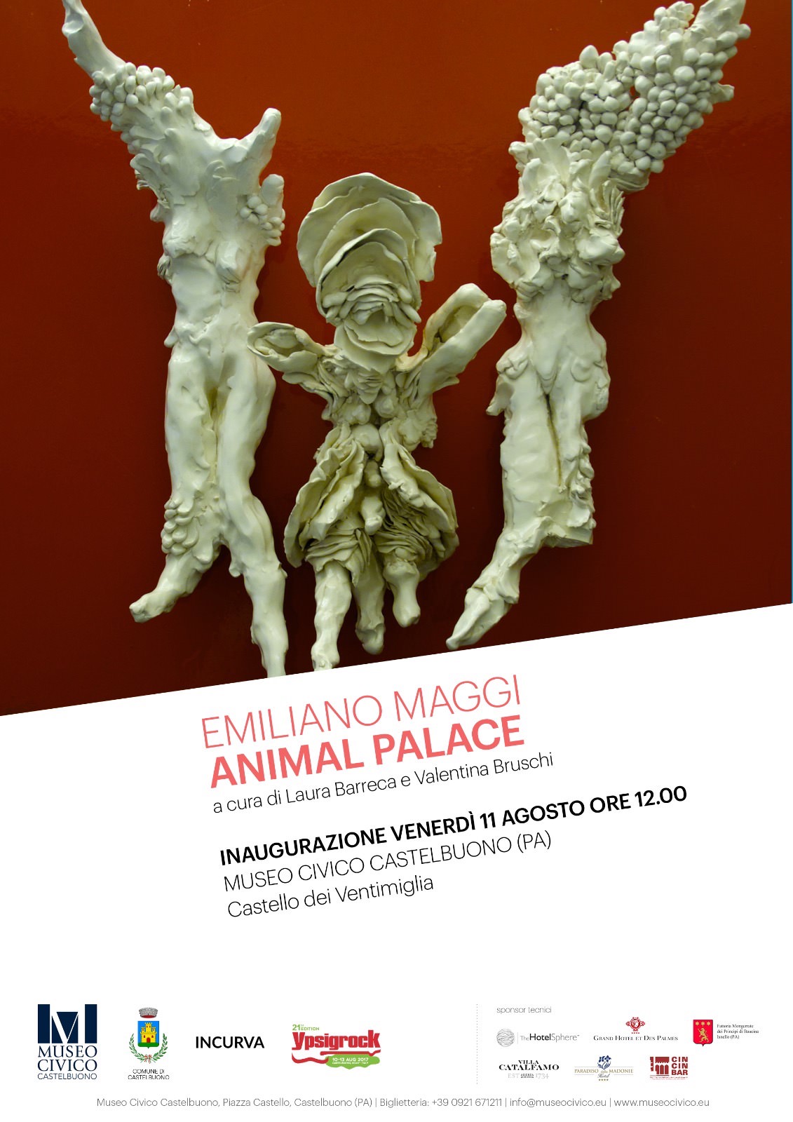 L’esposizione mira ad approfondire alcuni dei temi fondamentali della ricerca artistica di Emiliano Maggi, legati alla partecipazione emotiva, al simbolismo, al mistero della natura ancestrale, al mito e all’iconografia popolare, indagati dall’artista attraverso un’originale ricerca espressiva che intreccia linguaggi diversi, come la performance, la scultura e le sperimentazioni visive e sonore. Dopo un periodo di residenza in Sicilia, e lavorando a stretto contatto con gli artigiani del luogo, Emiliano Maggi ha realizzato delle sculture in ceramica e corallo, lavorando a Trapani con Platimiro Fiorenza, uno dei più importanti maestri nella lavorazione del corallo siciliano, liberamente ispirate all’iconografia degli stucchi della bottega di Giacomo Serpotta che decorano la Cappella Palatina del Castello dei Ventimiglia di Castelbuono, sede del Museo. Un progetto articolato, nato dalla collaborazione con INCURVA, associazione culturale per la promozione della ricerca e produzione dell’arte contemporanea.