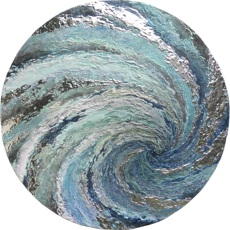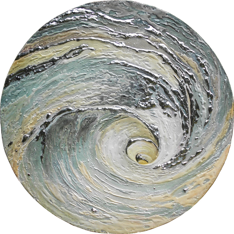 Questa mostra è un omaggio all’elemento che caratterizza l'identità del territorio di Bormio. L’acqua di cui Emilio Alberti tesse l’elogio riflette bagliori metallici, ha onde che fluttuano e ribollono, mulinelli, cascate, superfici increspate. Vortici impetuosi sottolineano uno stato di perenne e frenetica inquietudine. Un tema declinato in infinite variazioni, come in una sinfonia nella quale si alternano suggestioni, sollecitazioni, poesia. Sono opere la cui natura oscilla tra il dipinto e la scultura, realizzate con una tecnica del tutto personale fatta di stucchi, rilievi in metallo e leggere velature di colore che rendono la trasparenza e la dinamicità dell’acqua. I riflessi del metallo cambiano continuamente in base alla luce che li colpisce o secondo la posizione dello spettatore. Lucido, opaco, lucido, opaco, un continuo mutare.