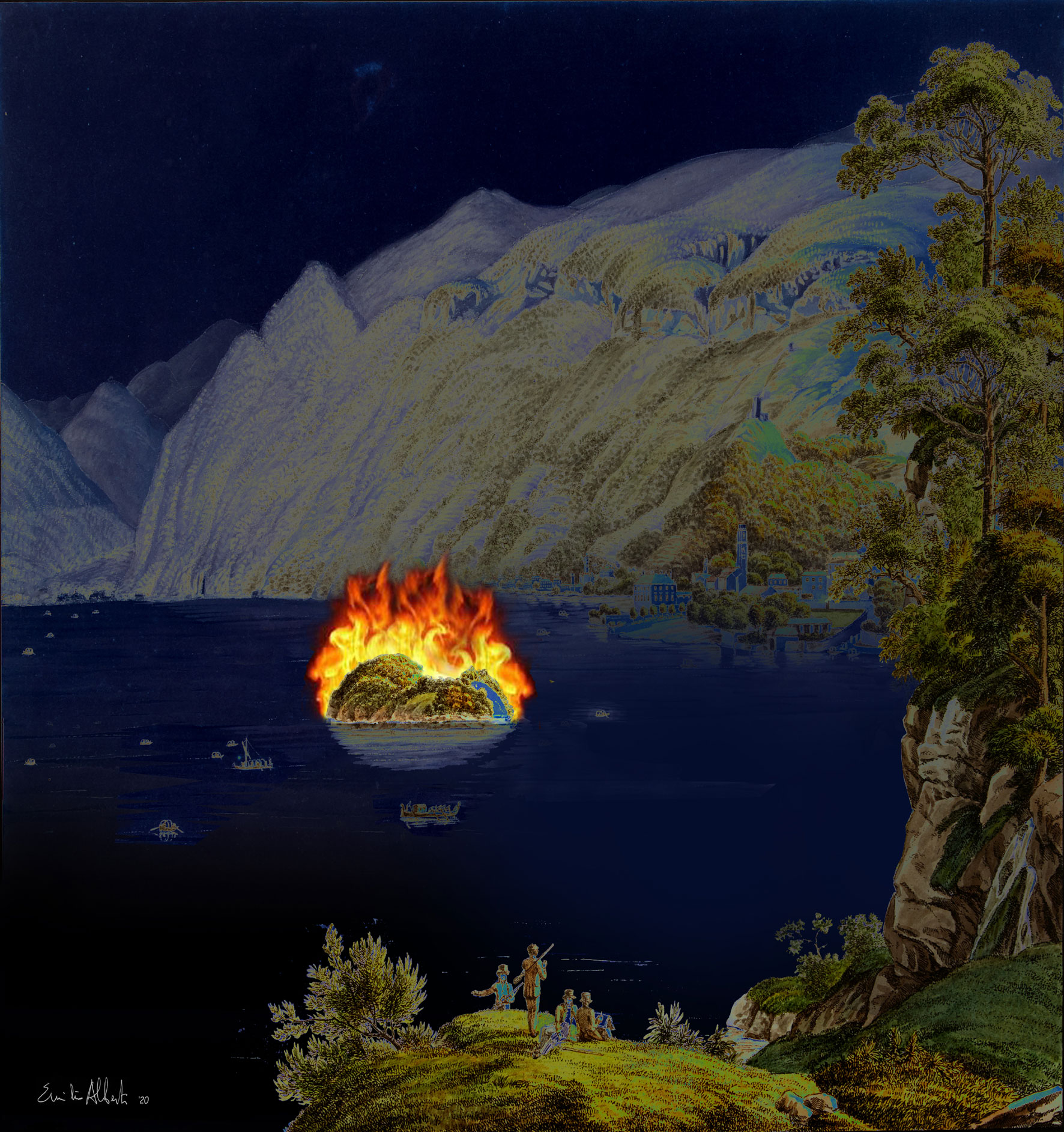 Una serie di dipinti incentrati sul tema del lago. L’ispirazione di fondo è il Grand Tour con la sua fascinazione per per la bellezza del paesaggio evocato dalle stampe ottocentesche esposte nel museo. In anteprima i lavori di arte digitale di Alberti e un suo video.