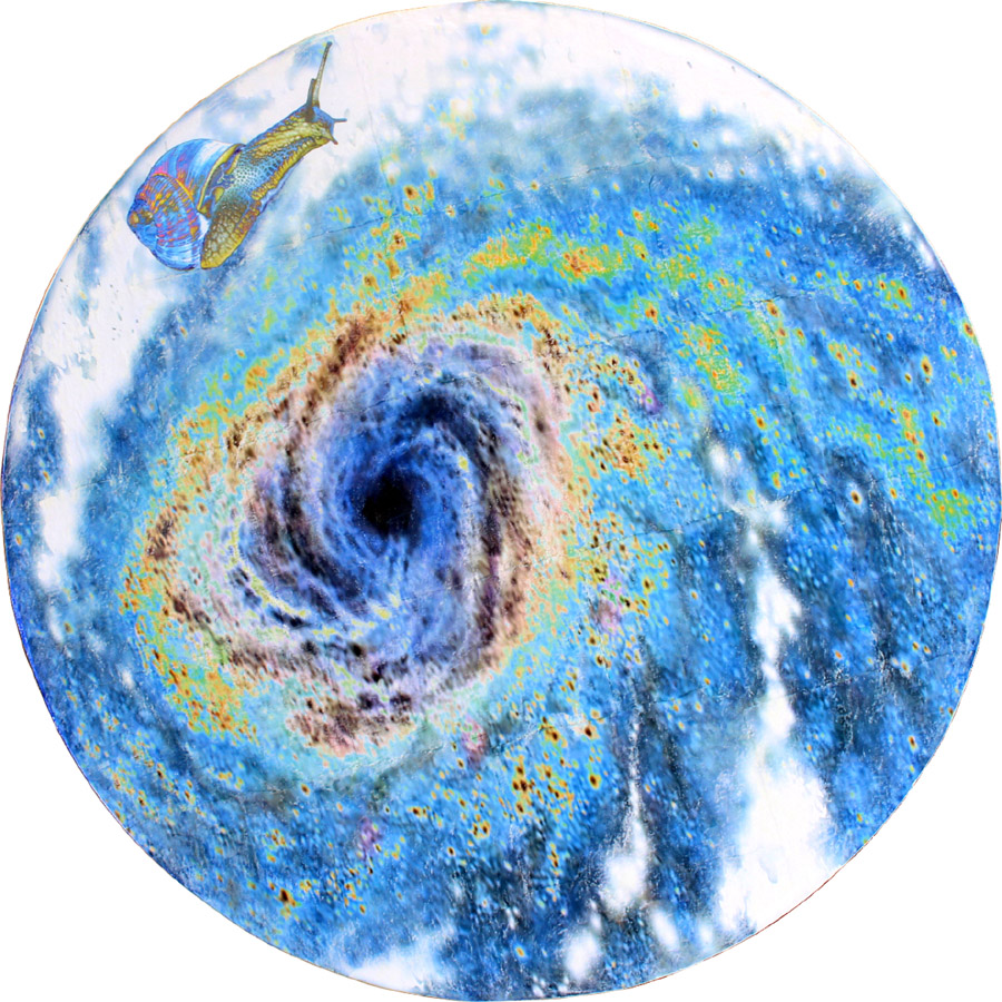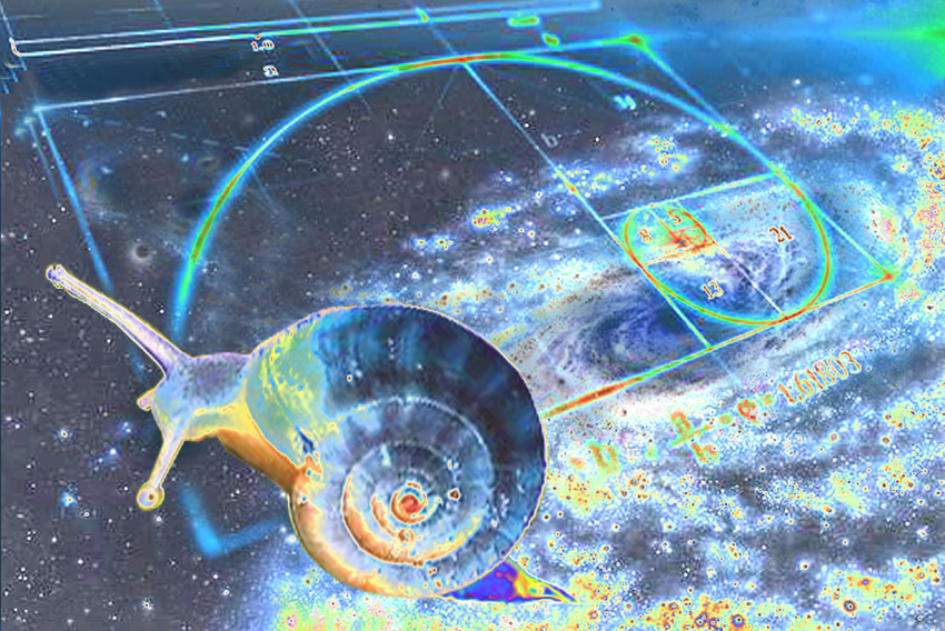 La Chiocciola Cosmica come personificazione della Spirale Aurea, la Divina Proporzione che nel Rinascimento fissò i canoni della bellezza e l’armonia delle forme nell’arte e della natura dove la stessa legge che regola la disposizione dei semi del girasole disegna il movimento dei cicloni e la struttura del nostro DNA fino ad assimilare il moto vorticoso delle galassie alle volute spiraliformi del guscio di una piccola chiocciola.