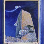 Il soggetto della finestra diviene concetto di soglia: atmosfera e forma evocativa del passaggio fra un qui e un altrove; come occhio aperto su realtà visionarie, galassie di mondi possibili dove protagonista è la Chiocciola Cosmica, una figura simbolica nata dalla fantasia, un singolare ed emblematico spirito guida. Si crea in questo modo una mitopoiesi di questo animale iconico il cui guscio spiraliforme esprime ef-ficacemente la regola codificata nella Sezione Aurea, divenendo protagonista di una mitologia fantastica il cui racconto visivo ci porta altrove, in un’altra dimensione tra galassie trasfigurate dove si avverte un senso di sospensione e di attesa. Un com-plesso di segni tra i quali domina il vortice ad imprimere dinamismo alla composizio-ne e a restituire il senso della temporalità nel tentativo di fissare l’istante originario: la prima scintilla, l’innesco della deflagrazione primordiale, il primo sussulto di quel mo-to perpetuo cosmico nel quale siamo immersi.